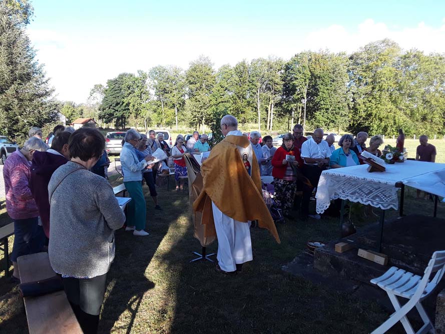 Le jeudi 23 juin la messe a été célébrée par l’abbé Claude Durupt épaulé par les personnes qui entretiennent ce lieu, des bénévoles, et des membres de l’équipe paroissiale.