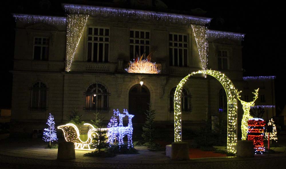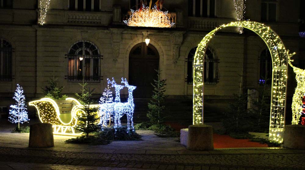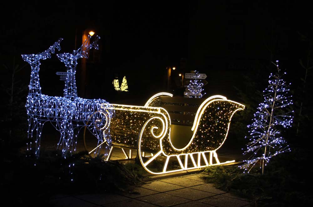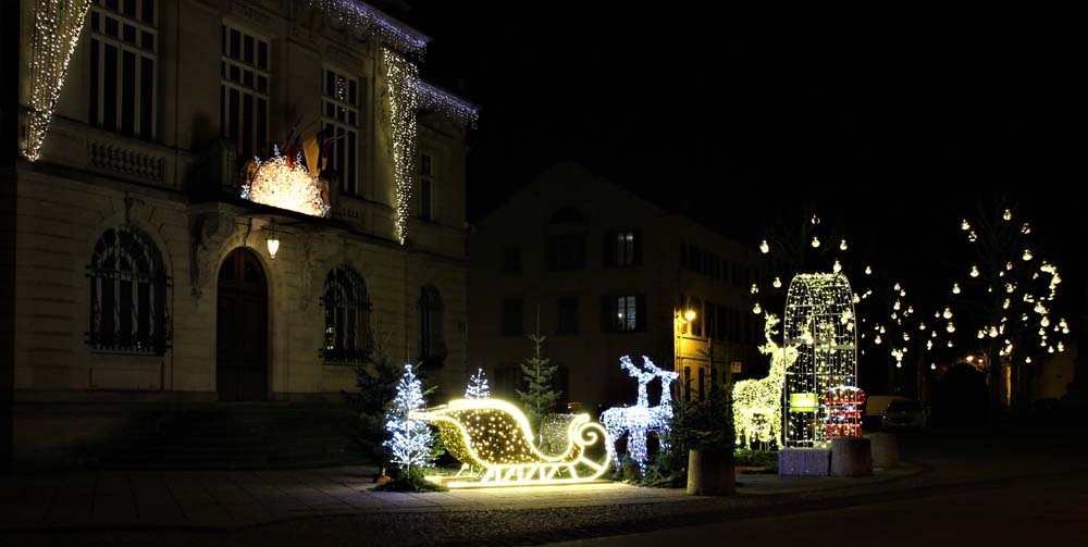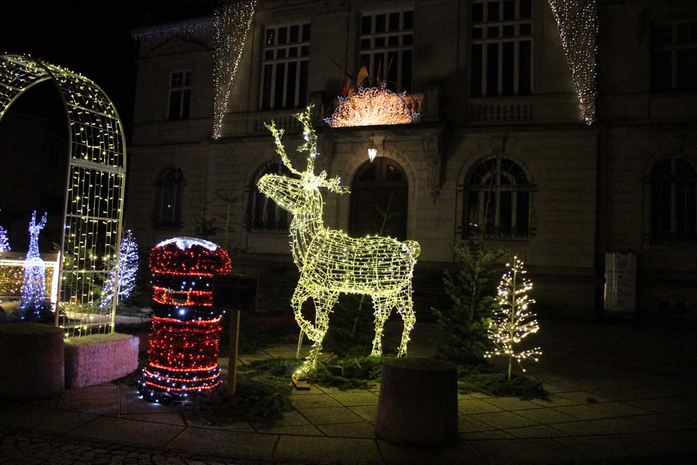 Le traîneau du père Noël avait investi le parvis de la Mairie.