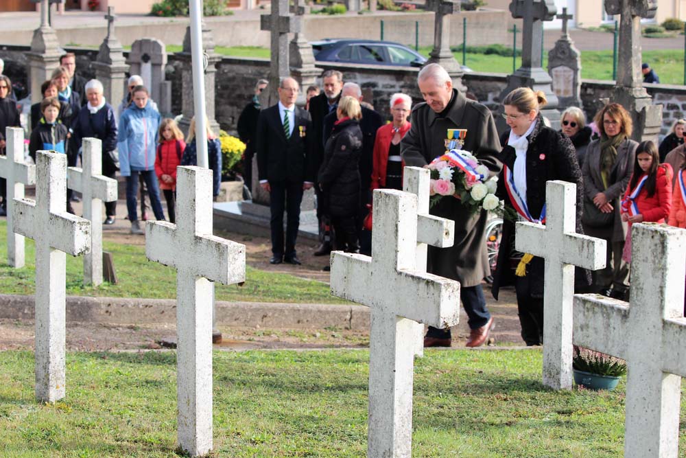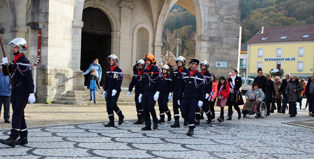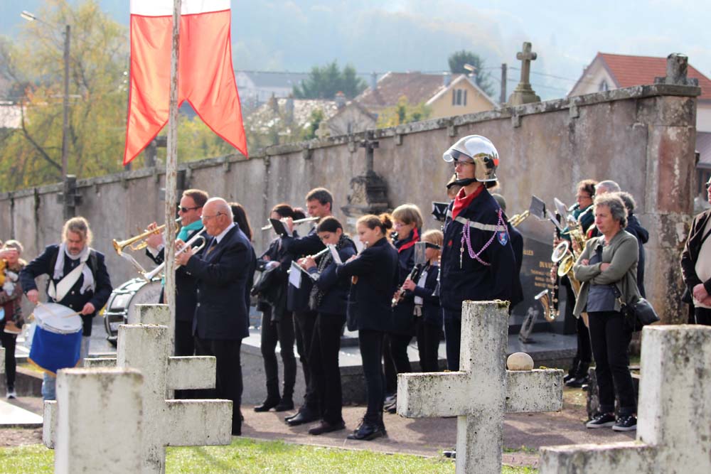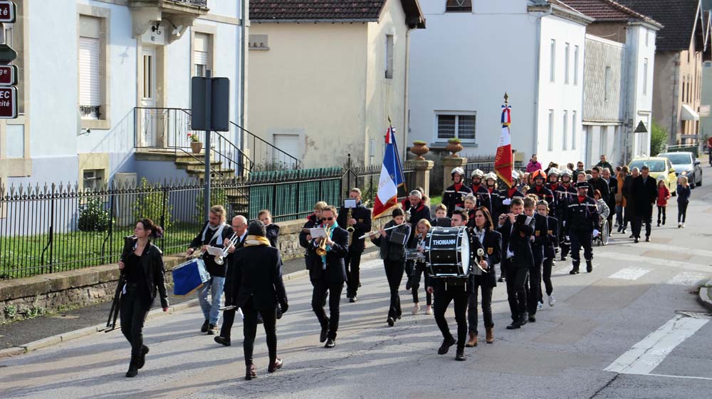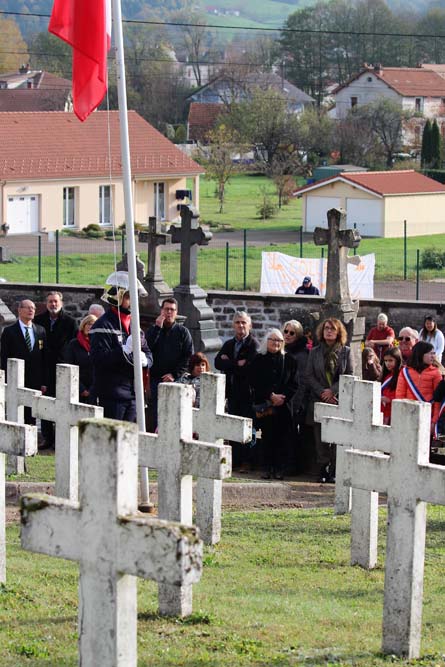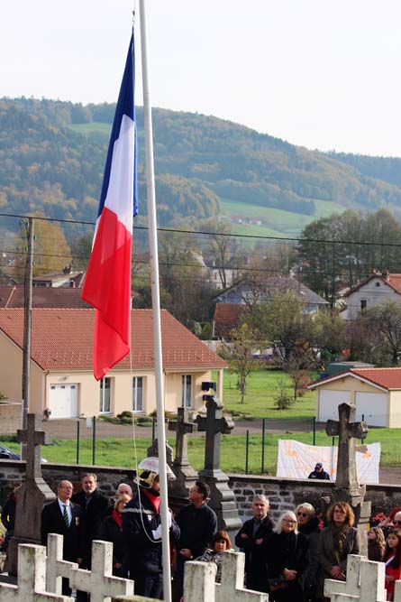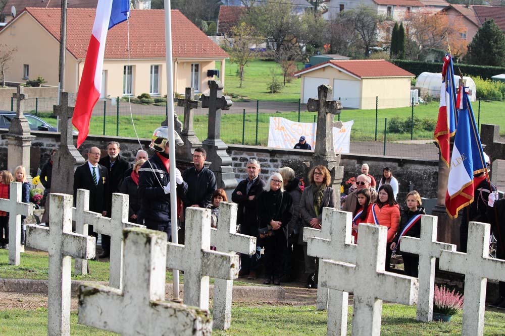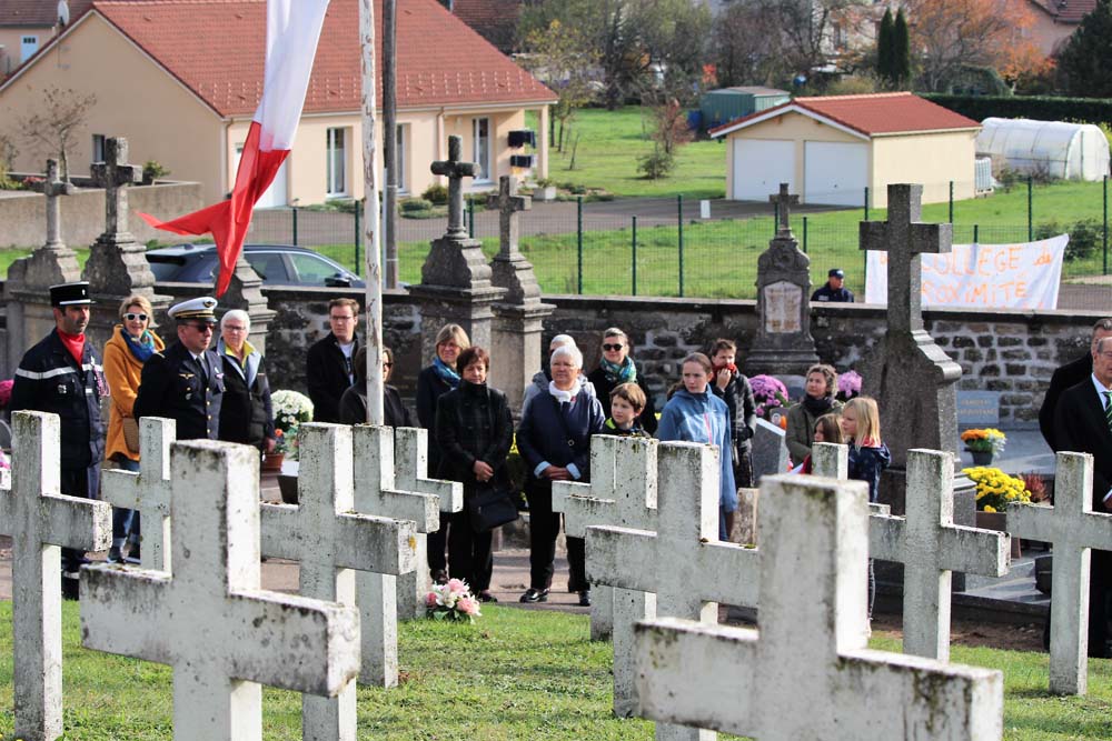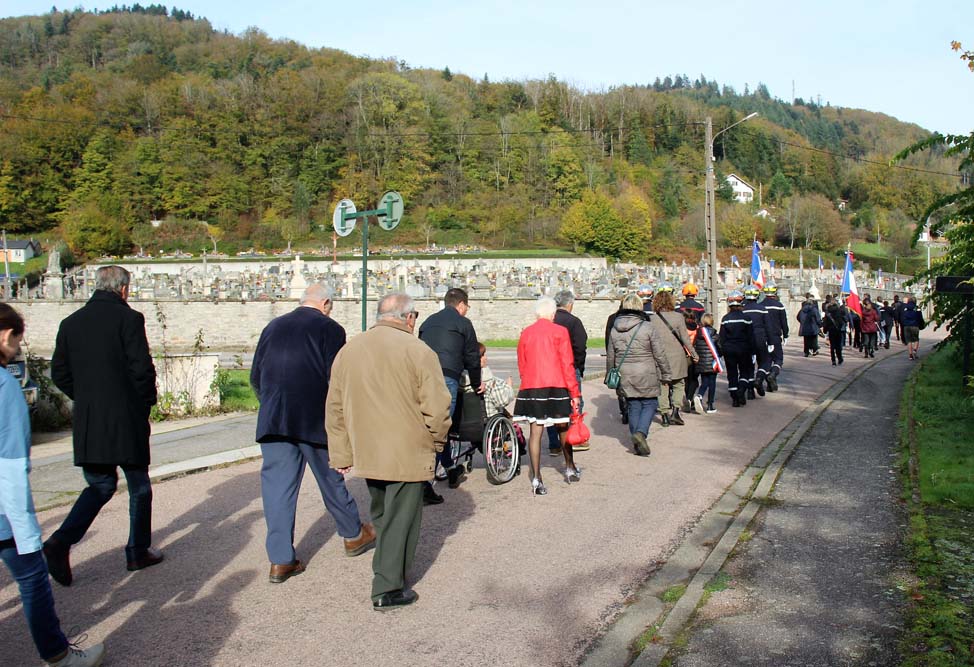 Après l’office religieux un cortège s’est formé pour se diriger vers le cimetière militaire, l’Harmonie Jeanne-d’Arc ouvrait la marche en musique suivie du corps des Sapeurs Pompiers, des membres du Conseil Municipal, des représentations d’associations Militaires et autres, et d’Ajolais. Dépôt de gerbe, Hymne Patriotique joué par l’Harmonie Jeanne-d’Arc.