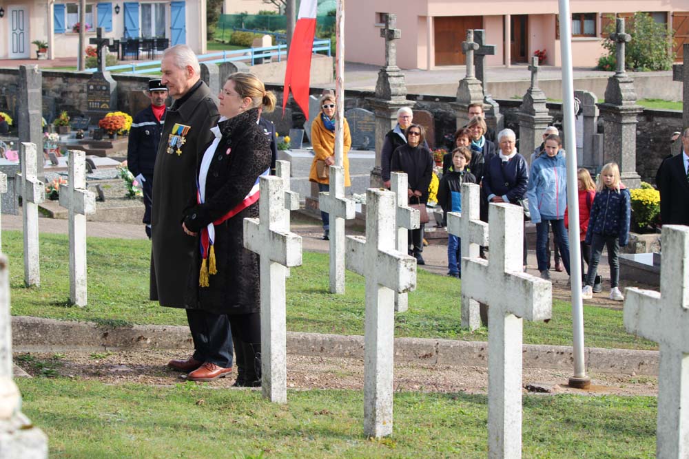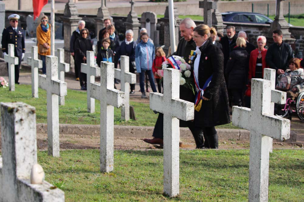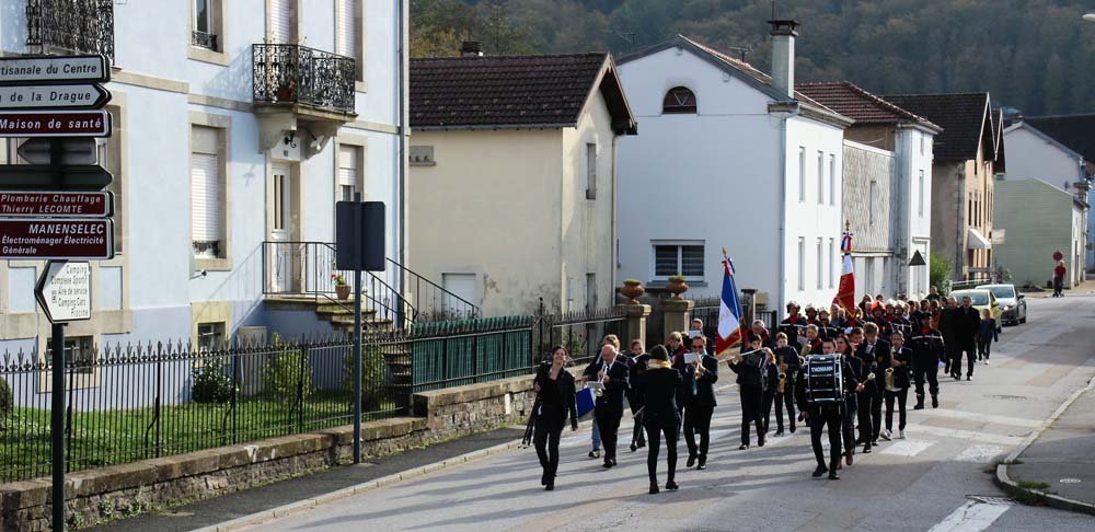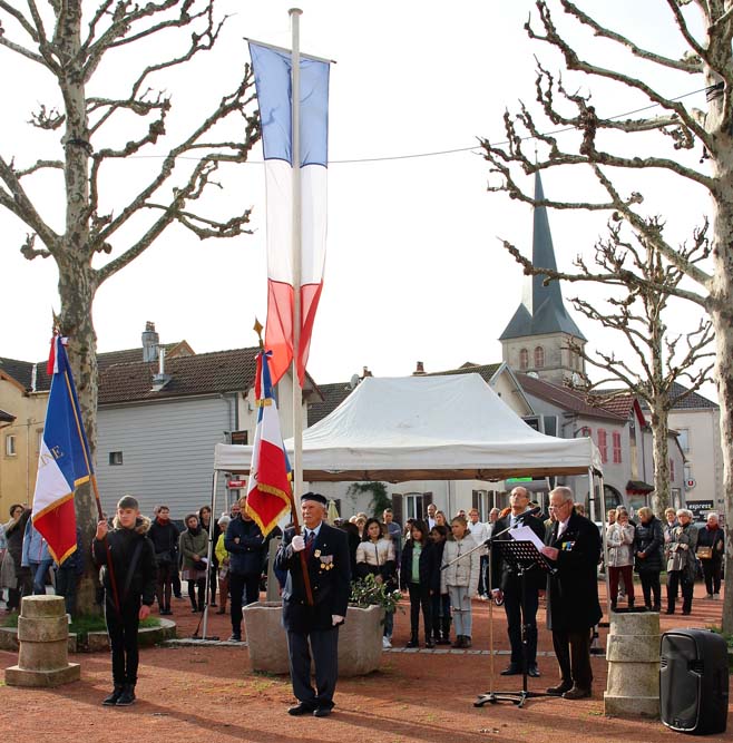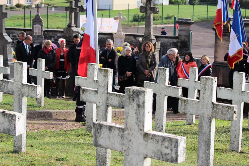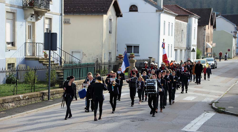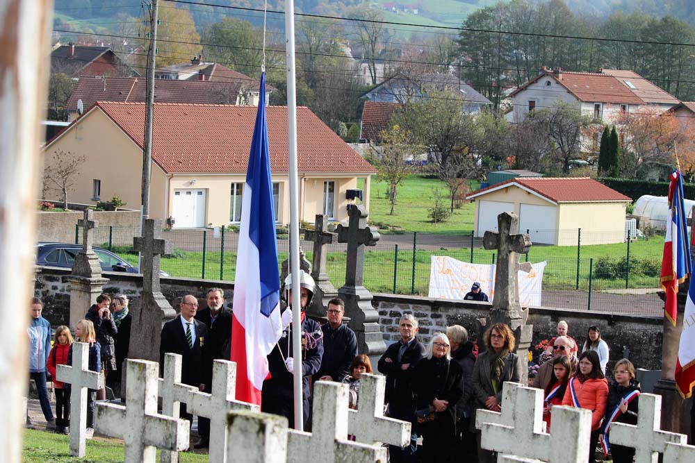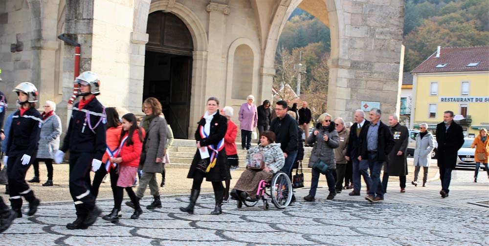 Après l’office religieux un cortège s’est formé pour se diriger vers le cimetière militaire, l’Harmonie Jeanne-d’Arc ouvrait la marche en musique suivie du corps des Sapeurs Pompiers, des membres du Conseil Municipal, des représentations d’associations Militaires et autres, et d’Ajolais. Dépôt de gerbe, Hymne Patriotique joué par l’Harmonie Jeanne-d’Arc.