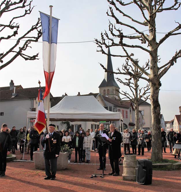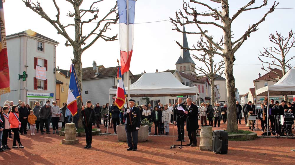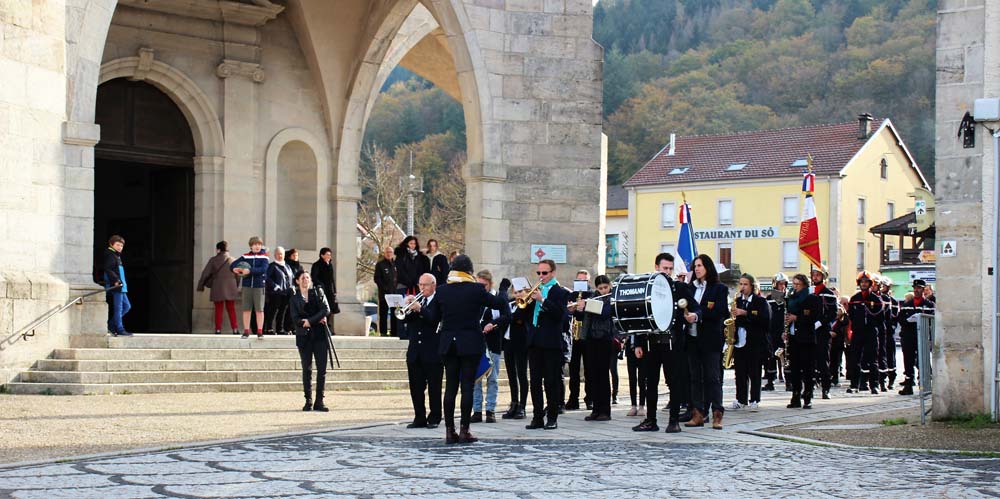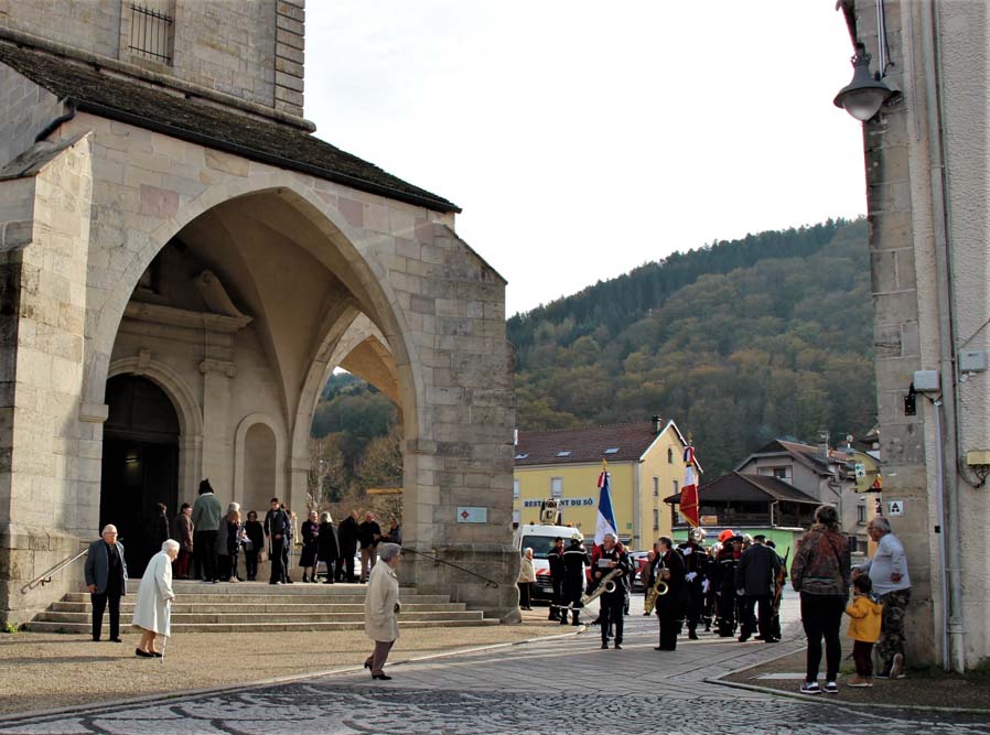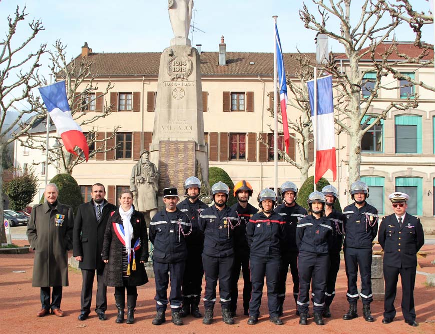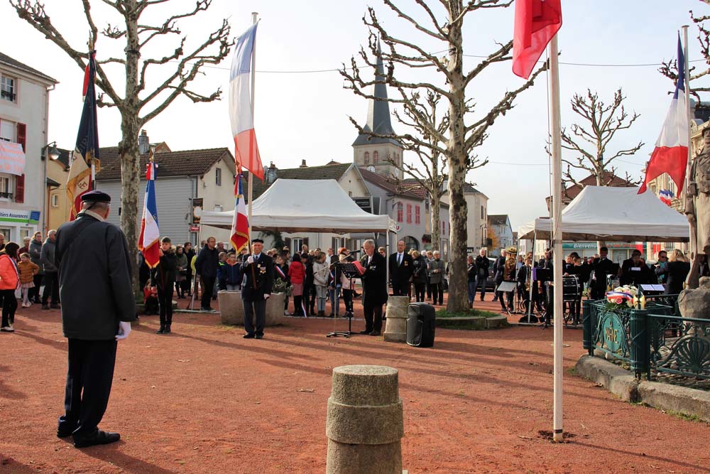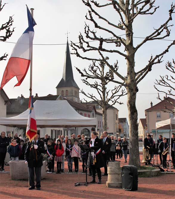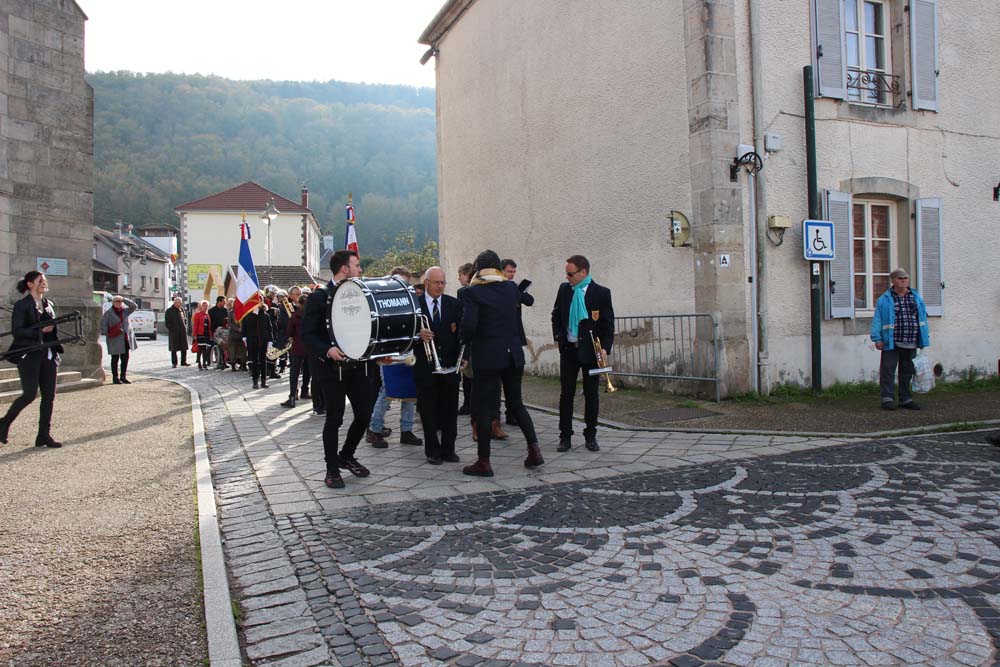 Après l’office religieux un cortège s’est formé pour se diriger vers le cimetière militaire, l’Harmonie Jeanne-d’Arc ouvrait la marche en musique suivie du corps des Sapeurs Pompiers, des membres du Conseil Municipal, des représentations d’associations Militaires et autres, et d’Ajolais. Dépôt de gerbe, Hymne Patriotique joué par l’Harmonie Jeanne-d’Arc.