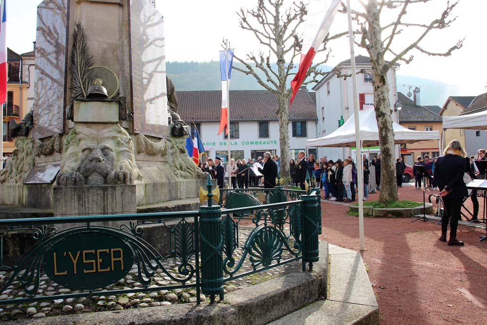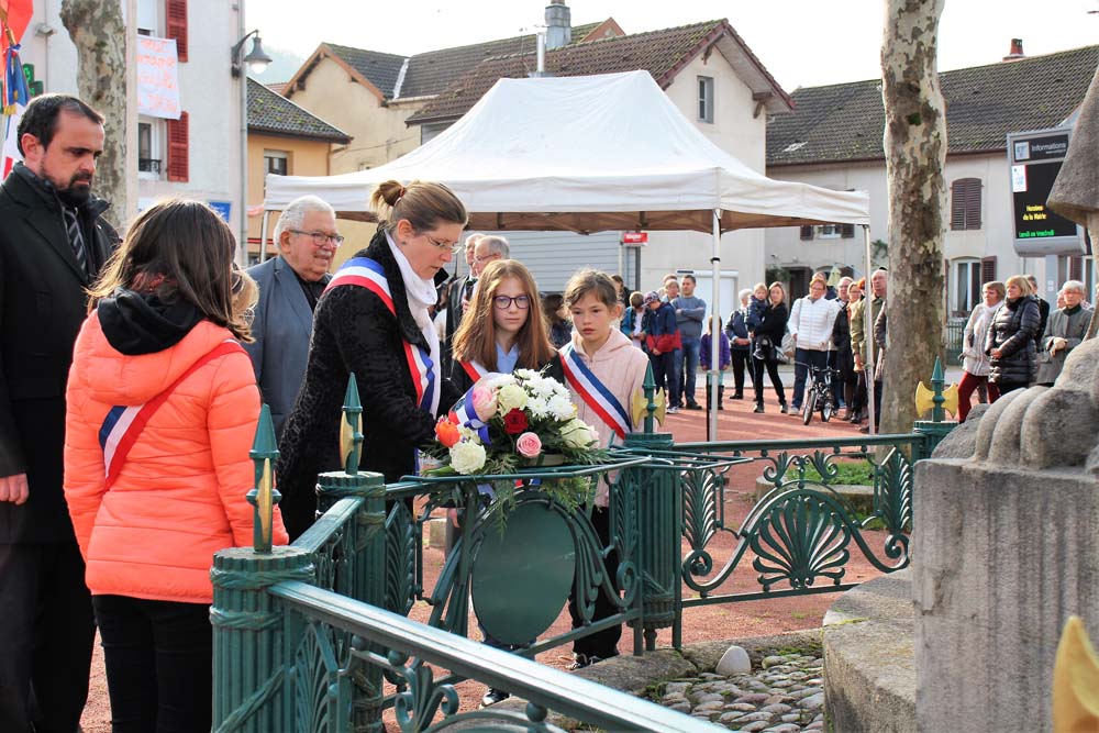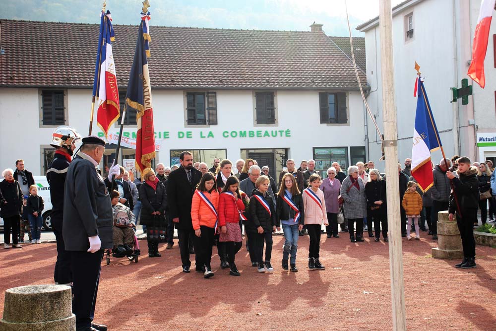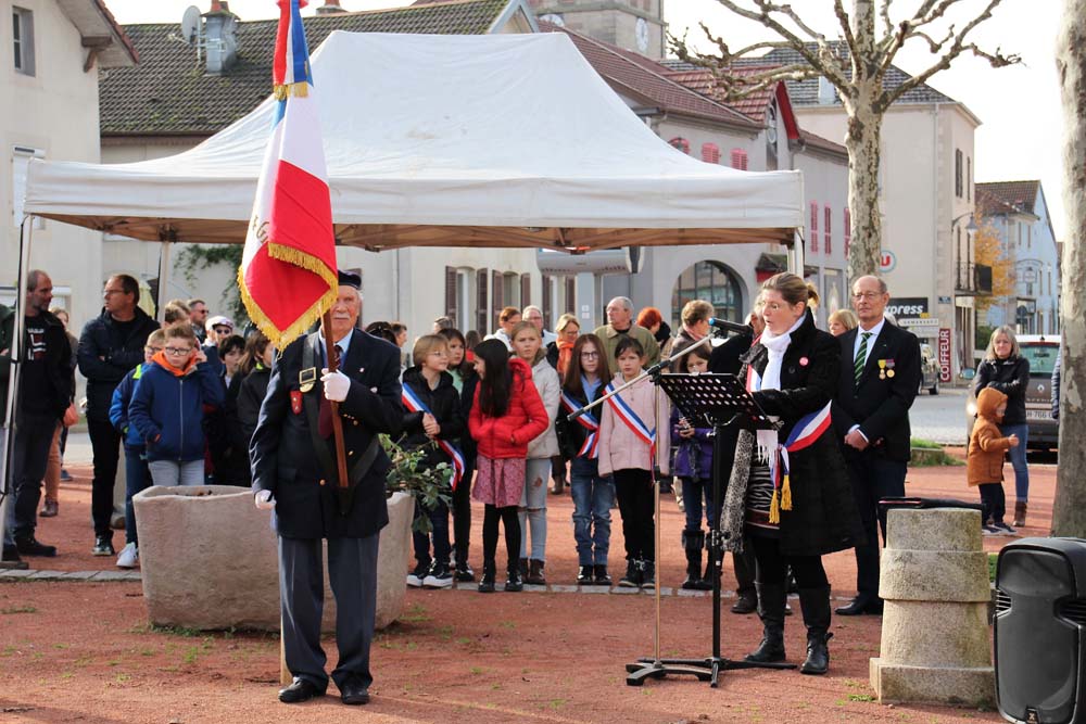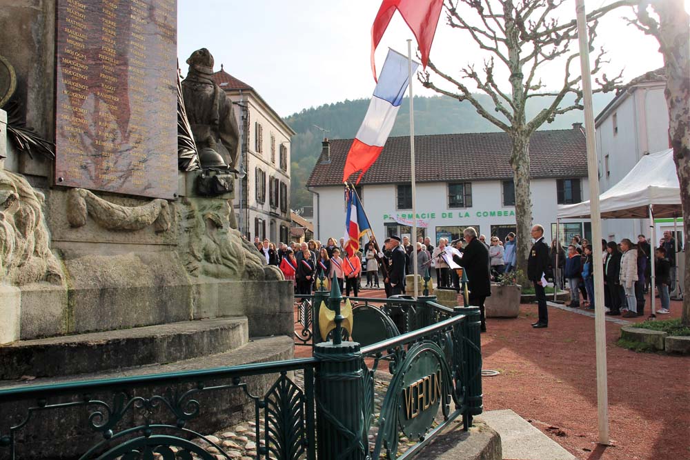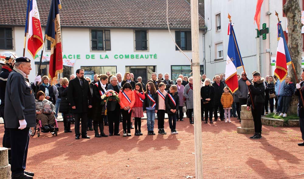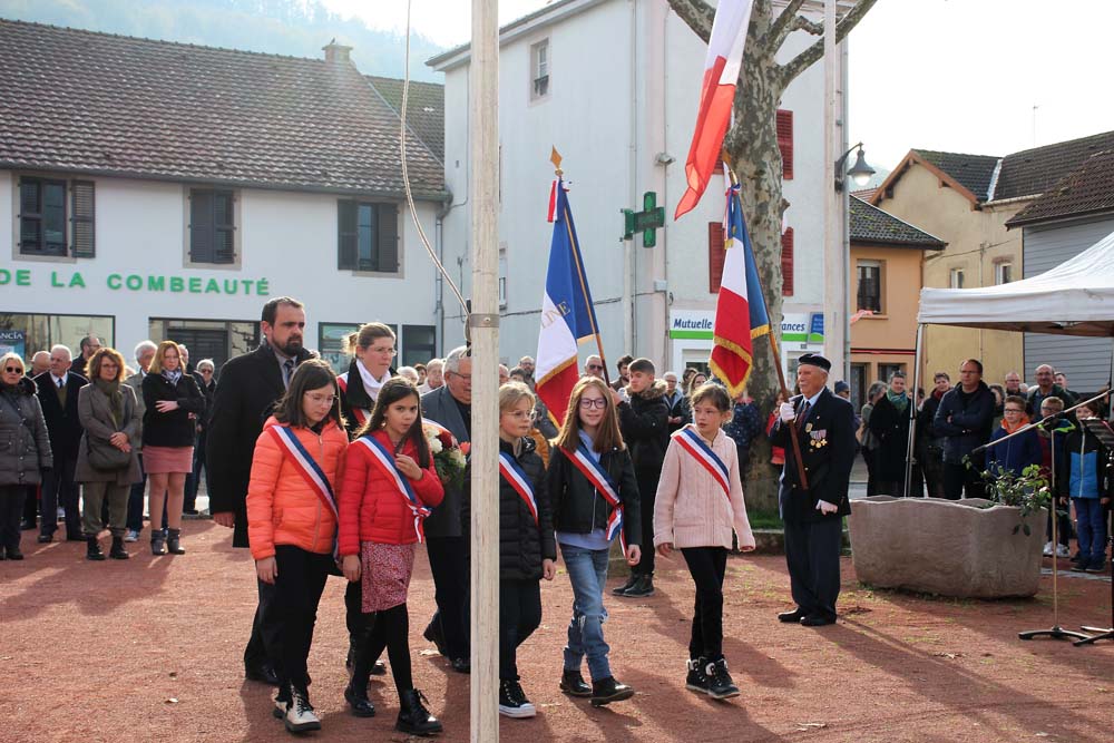 Retour au Monument aux Morts au centre-ville ou la population Ajolaise était présente pour assister à la cérémonie du 104ème anniversaire de l’armistice de la grande guerre. Après les discours officiels et le dépôt de gerbe, les élèves de la classe de M Christophe Colnot de l’École Primaire du Centre, ont chanté le refrain de la Marseillaise, ensuite M Jean-Claude Brignon a relaté la construction du monument qui vient de passer un siècle d’existence.