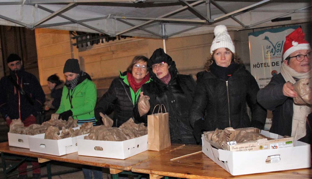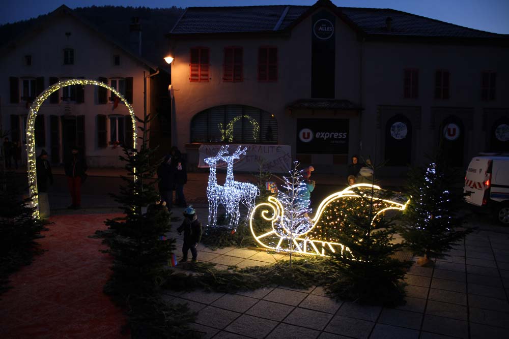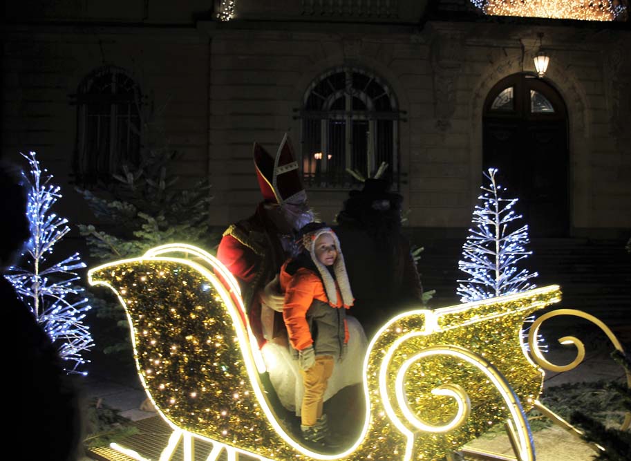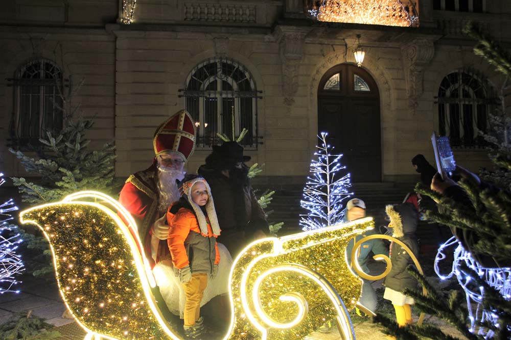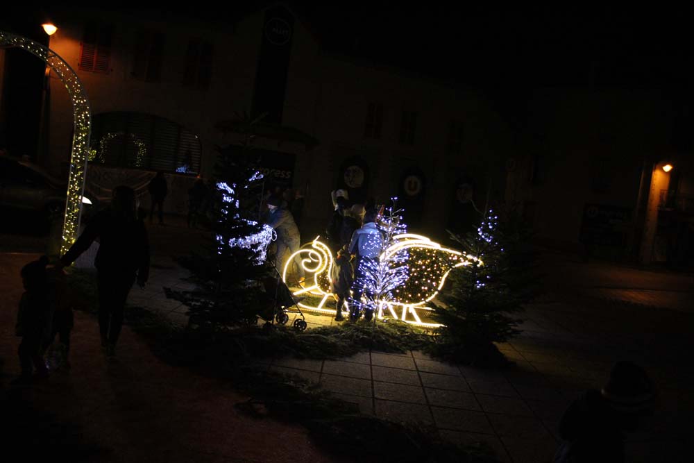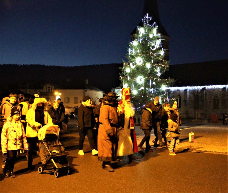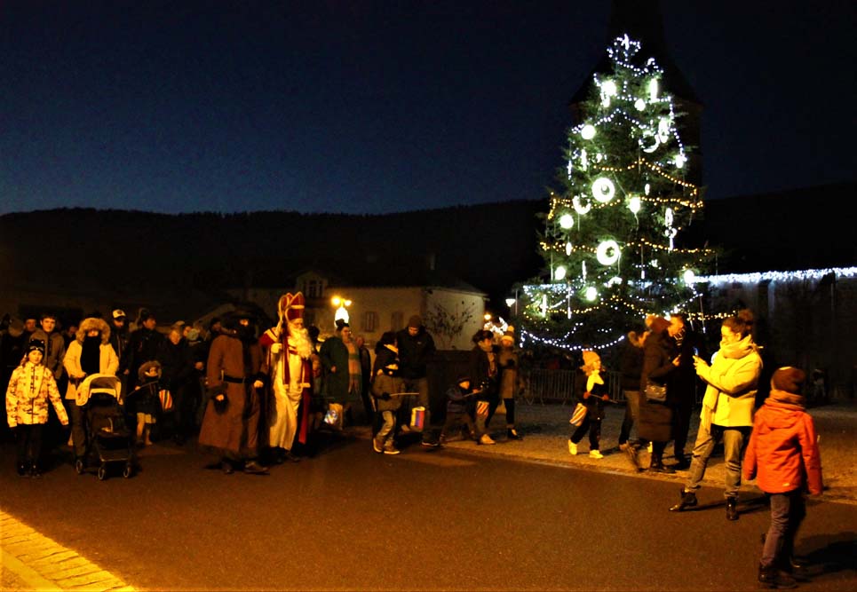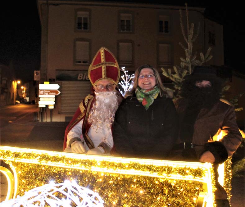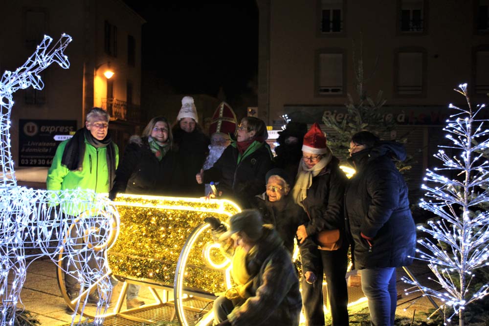 Le défilé eut lieu, suivi de la distribution de friandises par les bénévoles du Comité des Fêtes, sans oublier la séance photo sur le parvis de la Mairie décoré pour les fêtes de Noël.