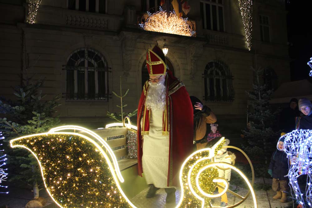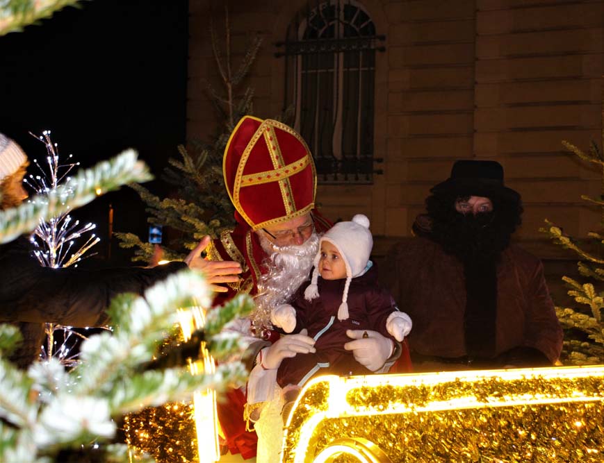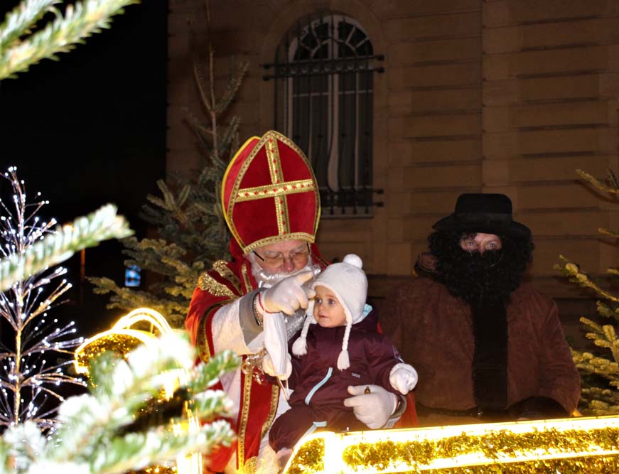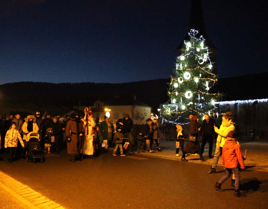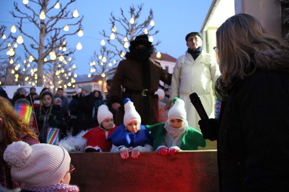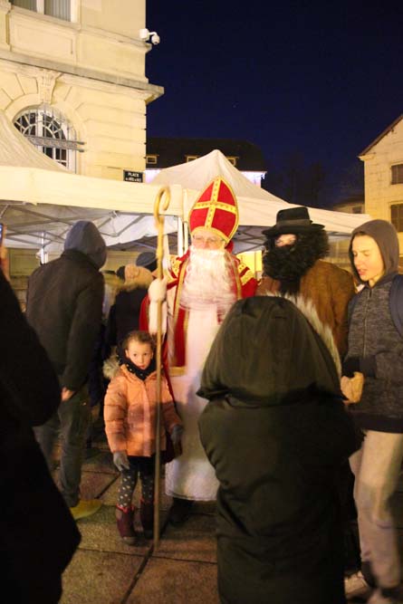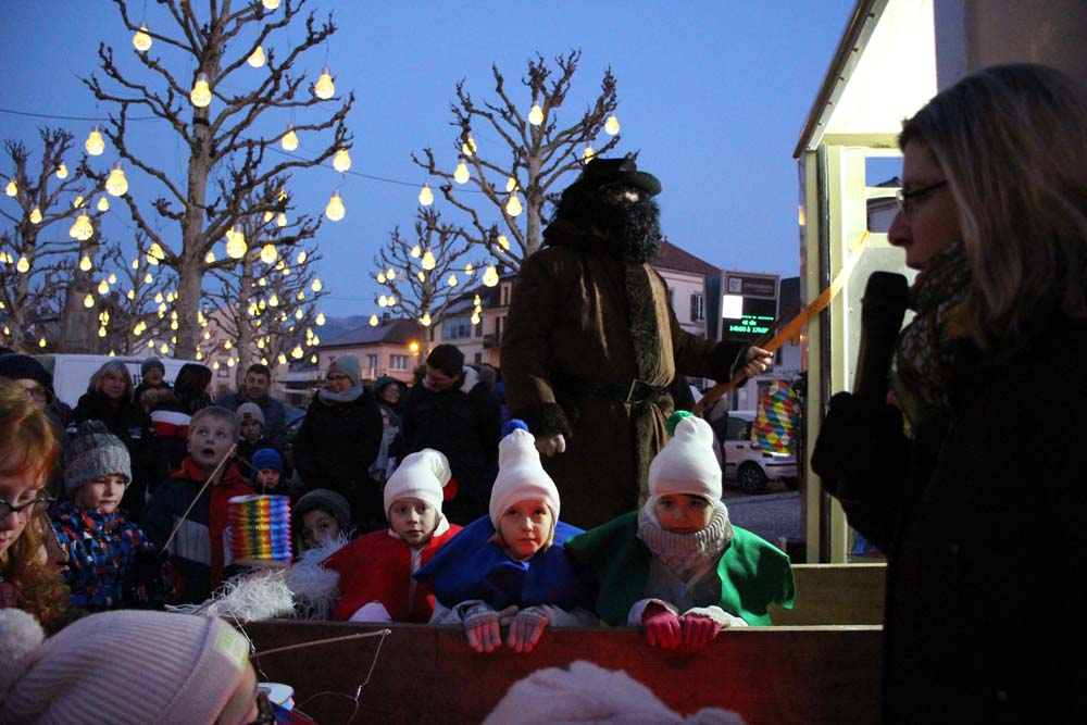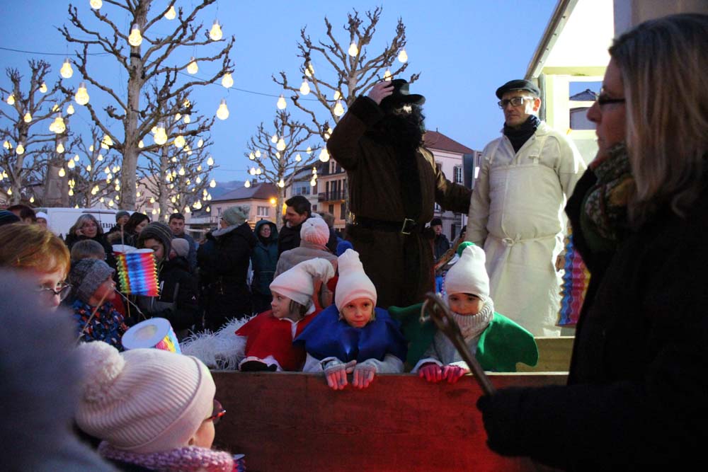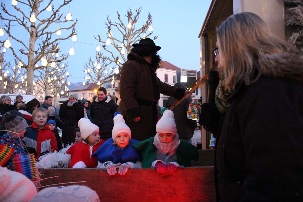 Les petits Ajolais attendaient impatiemment St Nicolas Place de l’Hôtel de ville au Val-d’Ajol.