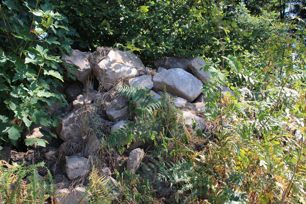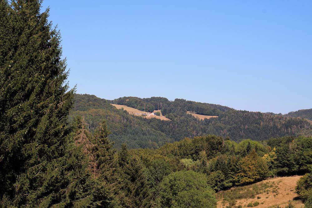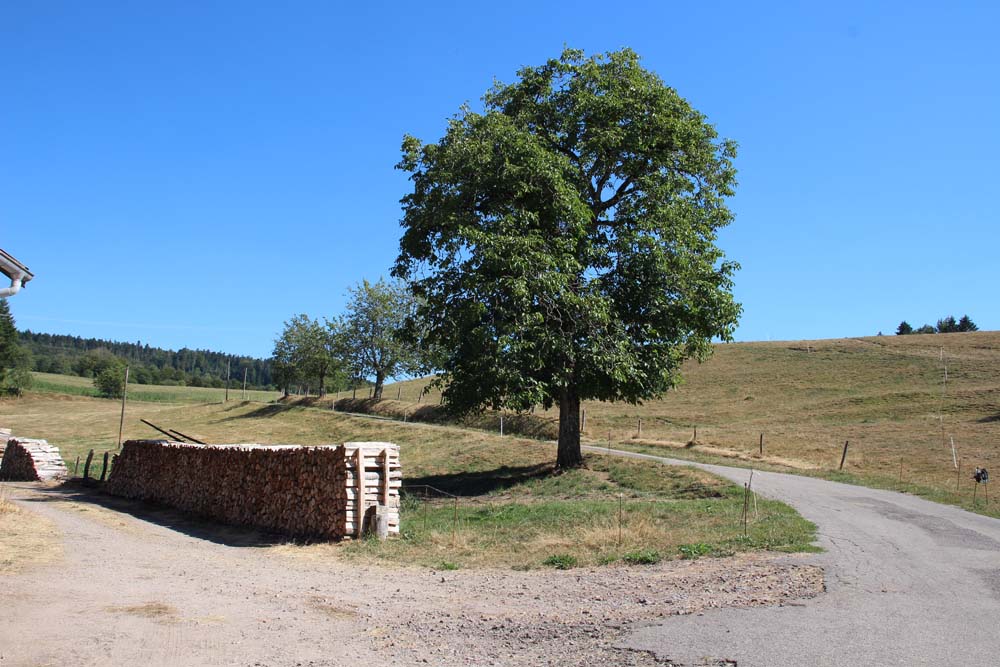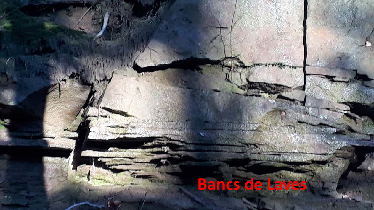 Dans le « bois rond « dévasté aujourd’hui aussi par le scolyte se cache une ancienne carrière de pierre de construction et sans doute de « laves « qui couronnent la strate de grès à Voltzia.