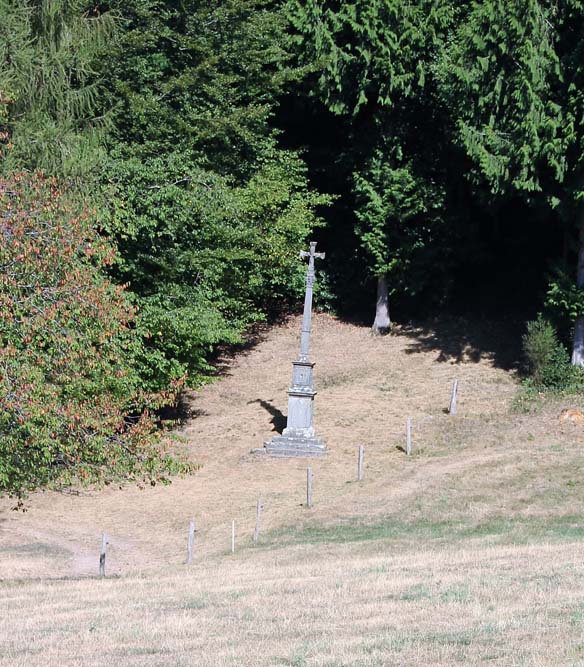 Le chemin mène à la croix, la plus haute de la commune au lieu-dit Le Frenot, édifiée en 1793, curieusement au moment où régnait à Paris et en France la terreur révolutionnaire conduite par Robespierre dans le dessein de déchristianiser le pays. Les sculptures évoquent la Passion du Christ et les outils de cette Passion : clous, lance, cruche, échelle……