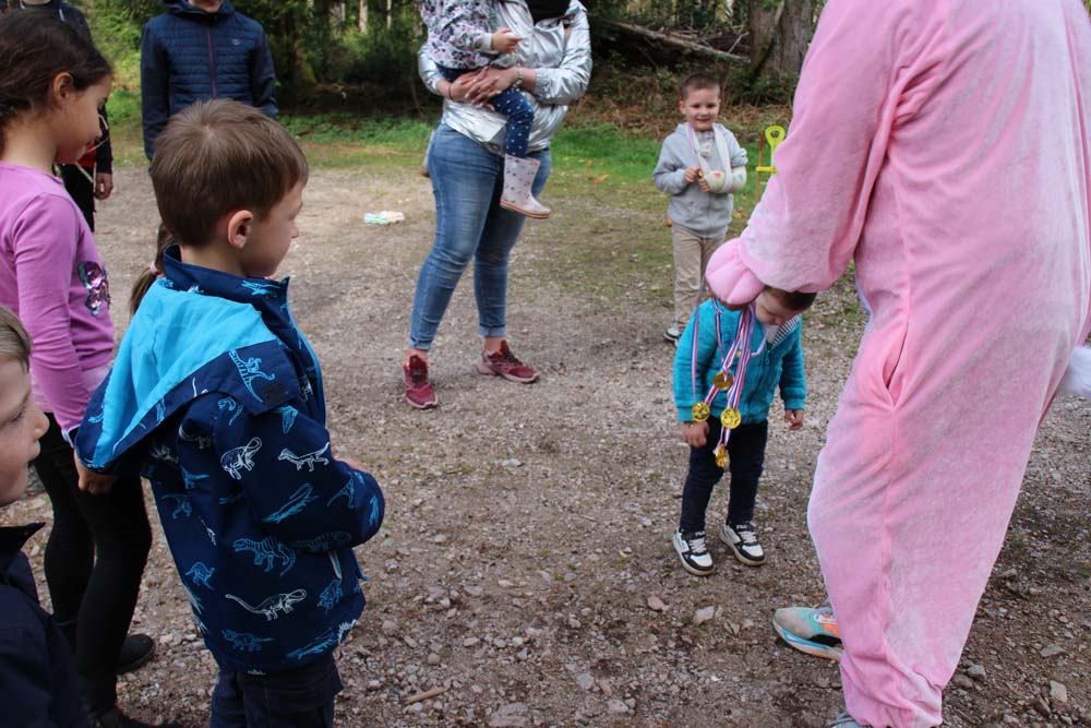 Mais les surprises ne s’arrêtaient pas là : grâce à la générosité de l’association Love On The Rocks, chaque petit chasseur s’est vu remettre une médaille, offerte avec le sourire par le lapin Galipette, ainsi qu’un livre à colorier, distribué par Patricia.
