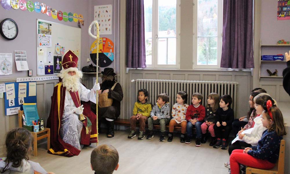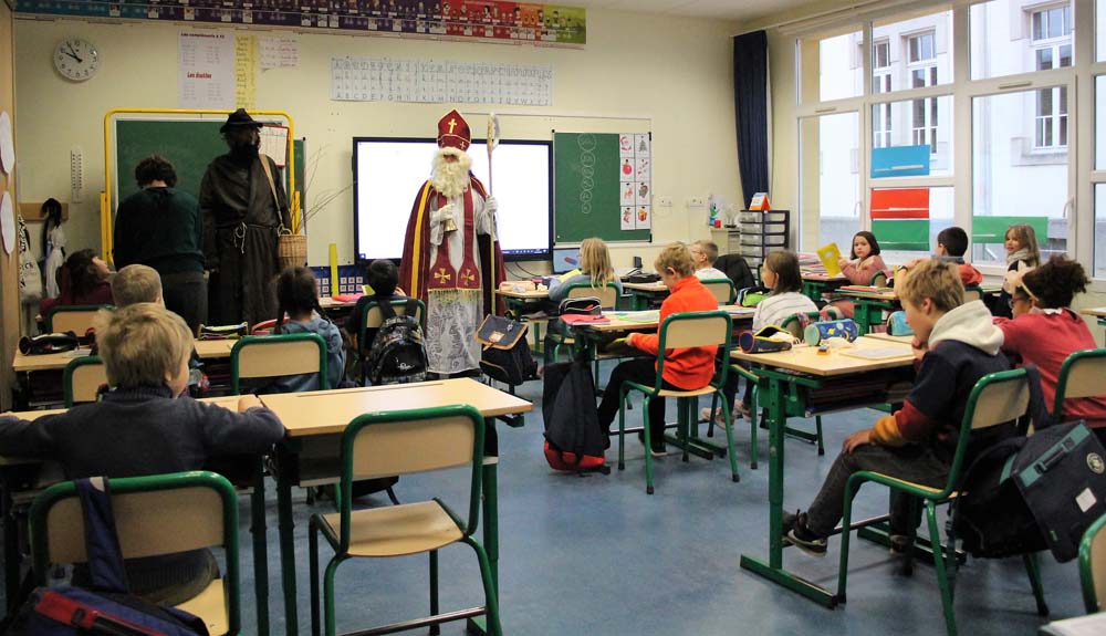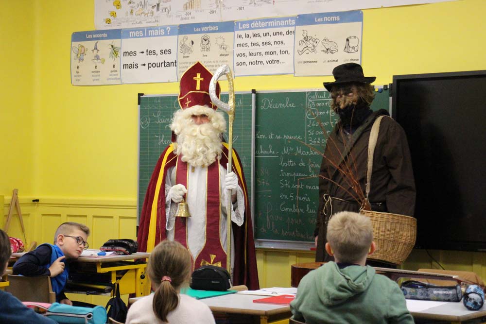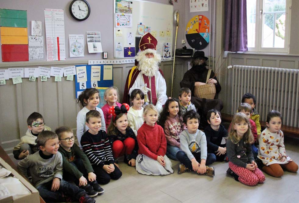 Les enfants de toutes les classes de l’école Primaire du Centre ont reçu St Nicolas et le père fouettard le jour de sa fête le 6 décembre. Comme tous les petits Lorrains connaissent la légende du grand Saint nous ne vous la raconterons pas.