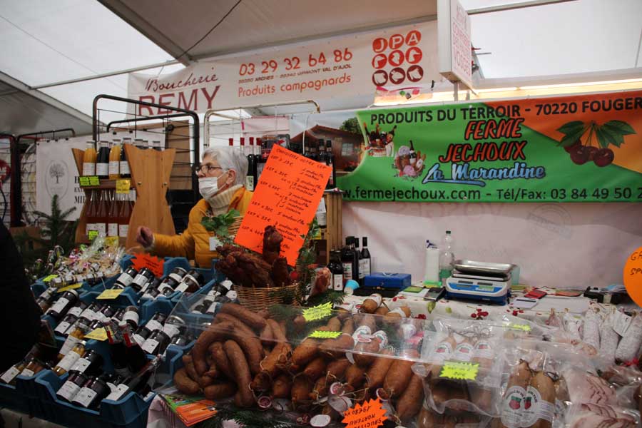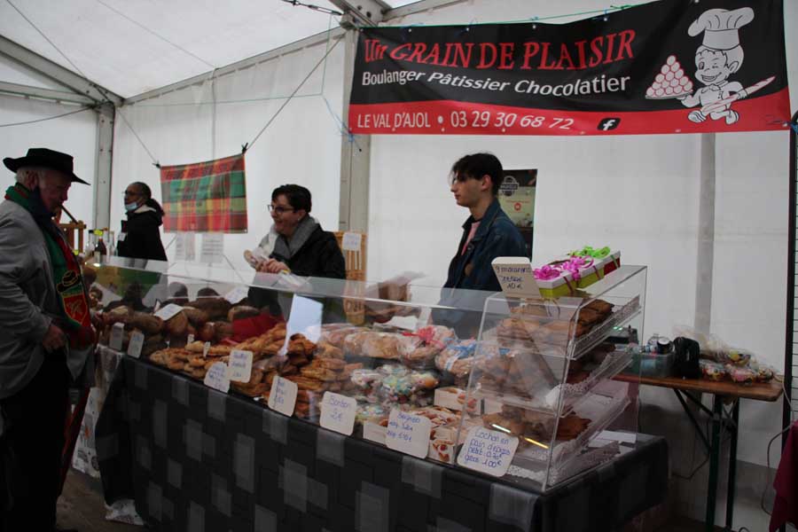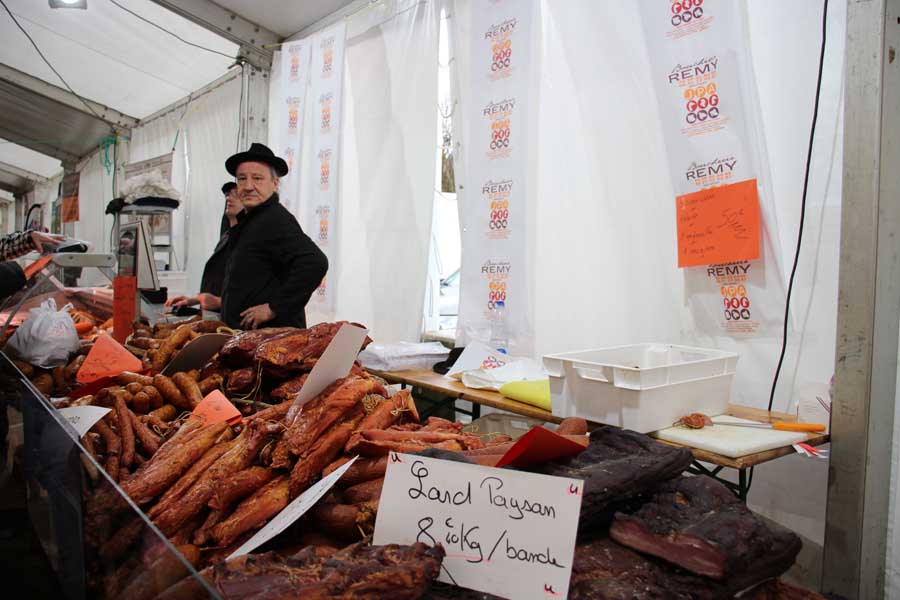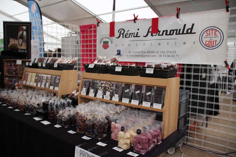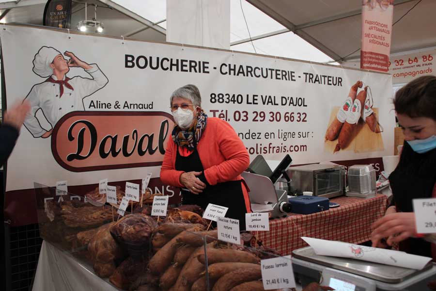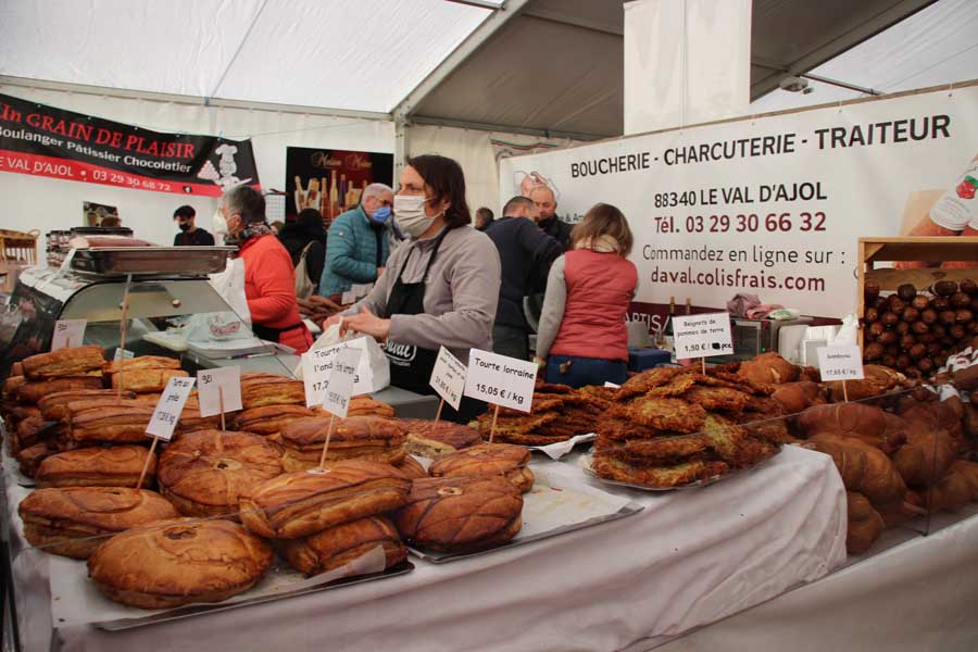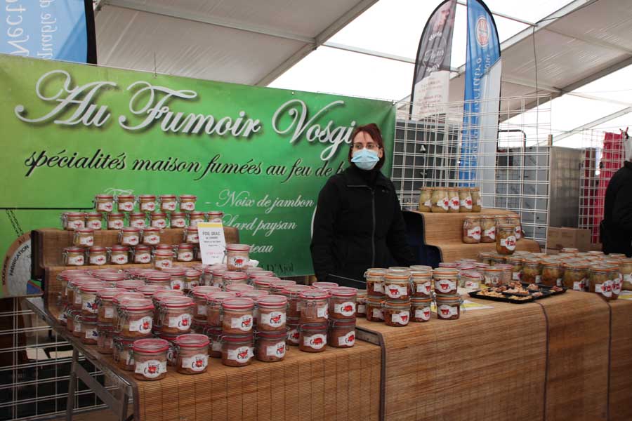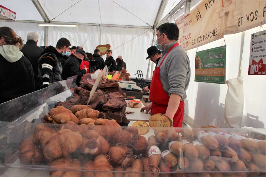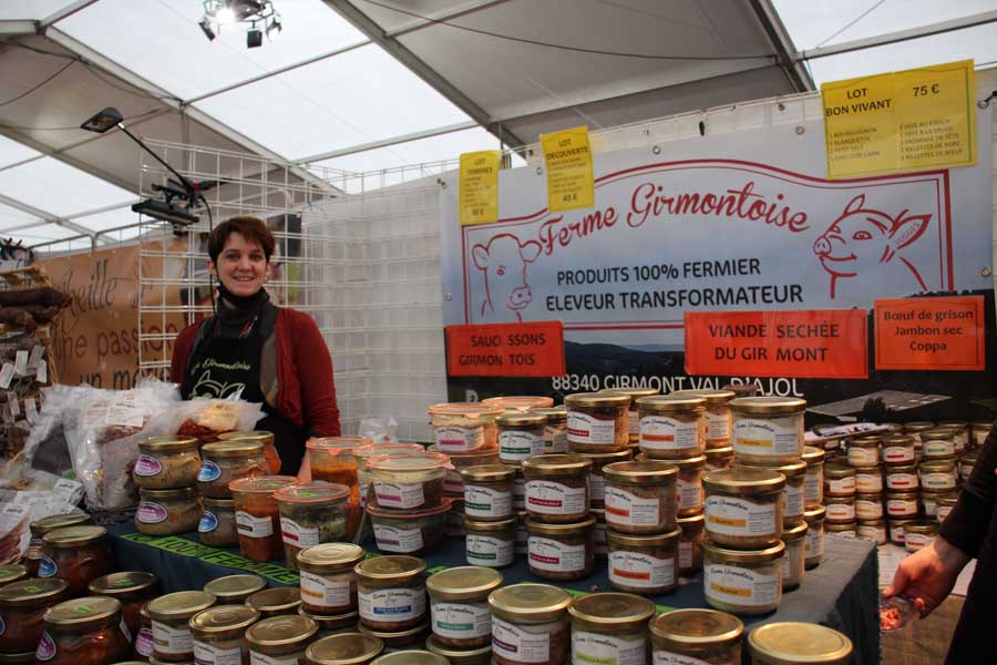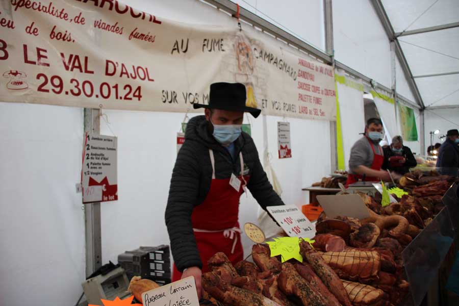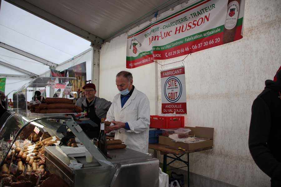 Les 60 exposants installés sous le chapiteau place du Sô,, représentaient toutes les contrées de France. Les visiteurs tout en étant dans un village de moyenne montagne, ont fait un tour de France à pied, pour le plaisir des papilles des produits du terroir, et plus particulièrement une halte en terre Ajolaise, pour déguster, chaude ou froide, la reine du jour « L’Andouille du Val-d’Ajol », accompagné de son ami le Gandoyau, la bande de lard, et autres produits fumés. Les 4 bouchers charcutiers de la commune, seuls détenteurs de la marque déposé, étaient présents pour vanter la spécialité Ajolaise.