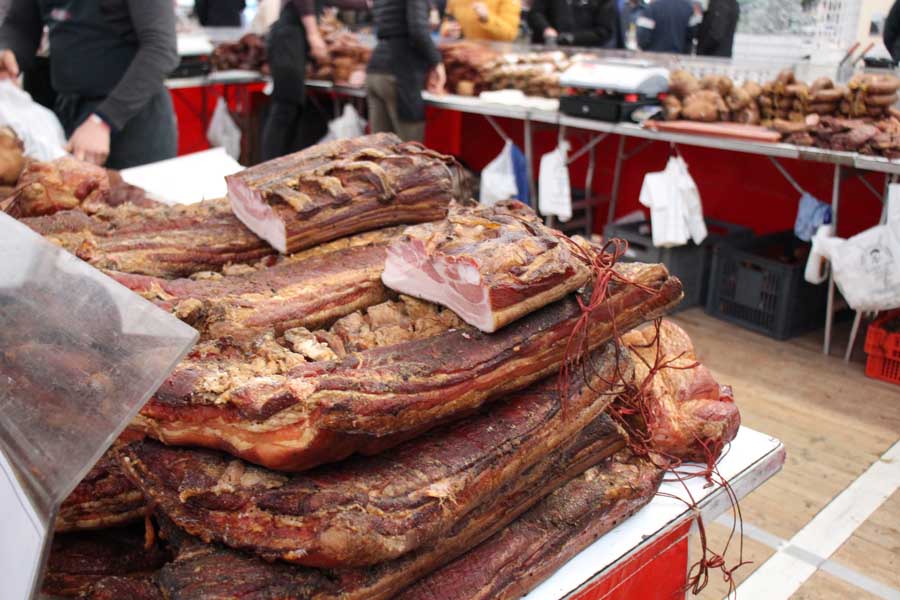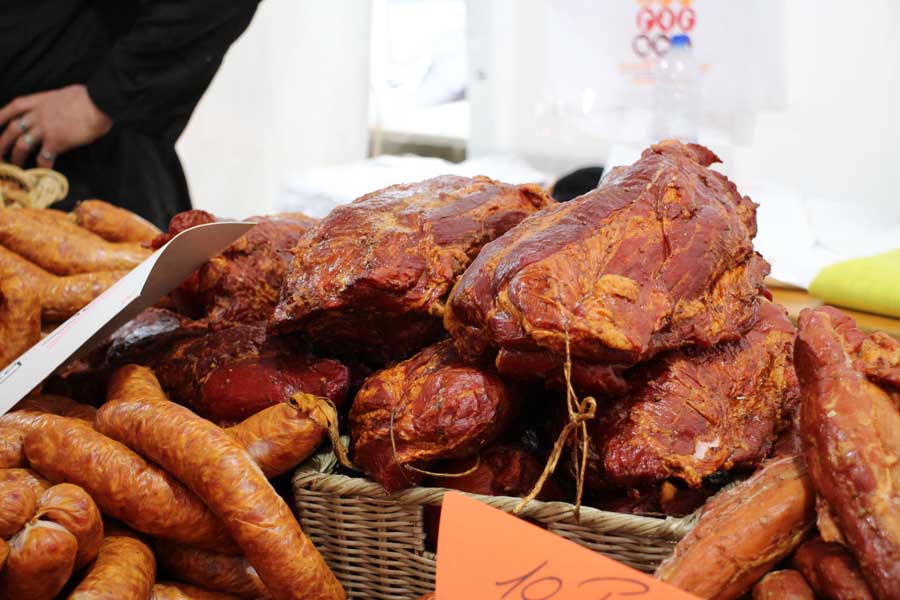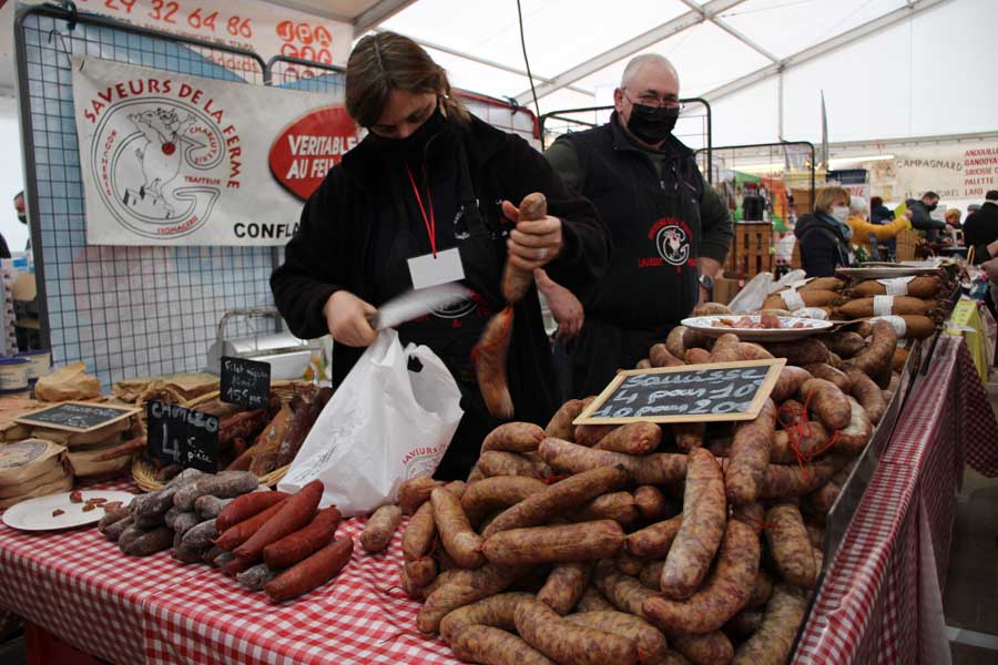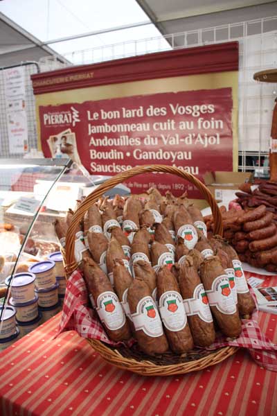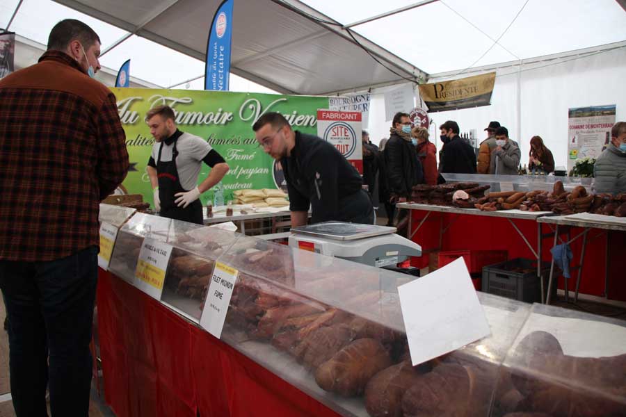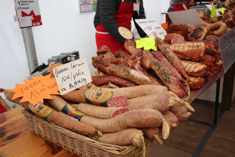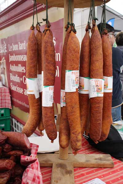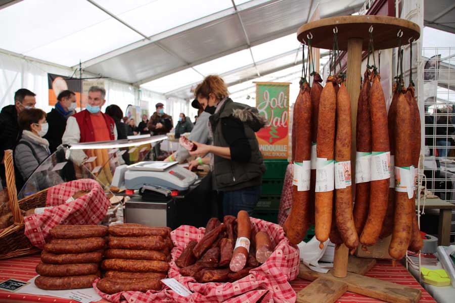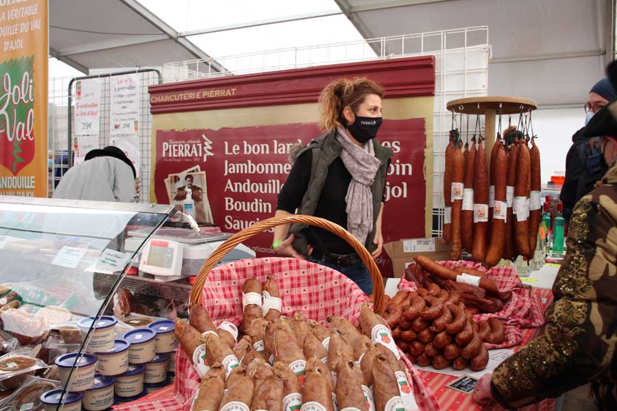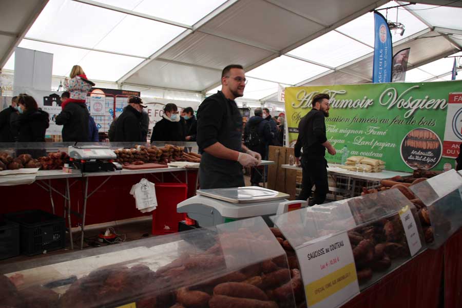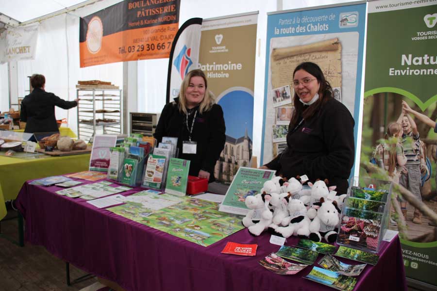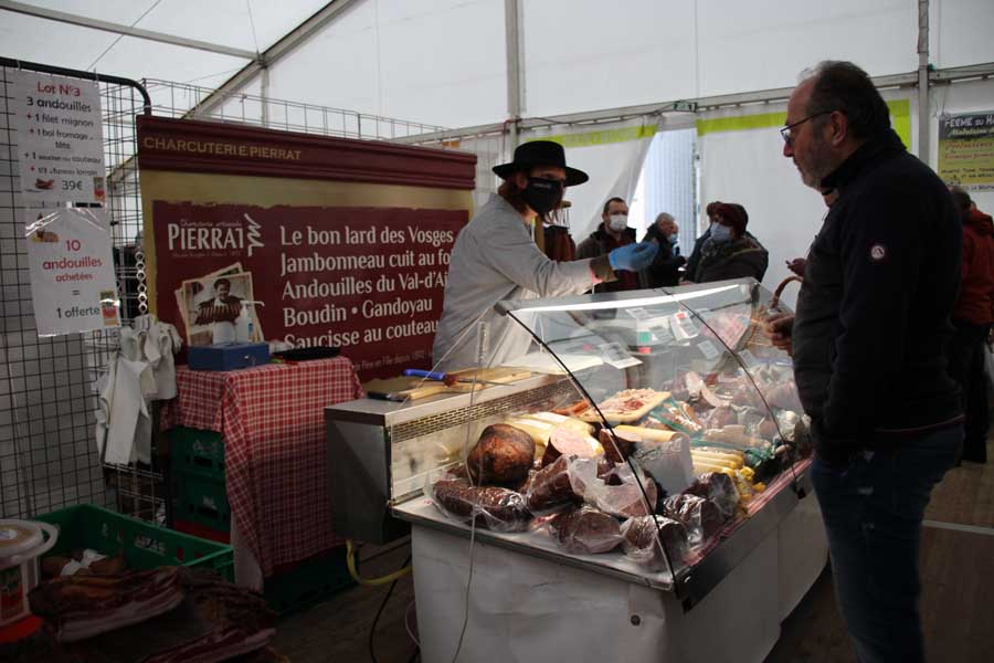Les 60 exposants installés sous le chapiteau place du Sô,, représentaient toutes les contrées de France. Les visiteurs tout en étant dans un village de moyenne montagne, ont fait un tour de France à pied, pour le plaisir des papilles des produits du terroir, et plus particulièrement une halte en terre Ajolaise, pour déguster, chaude ou froide, la reine du jour « L’Andouille du Val-d’Ajol », accompagné de son ami le Gandoyau, la bande de lard, et autres produits fumés. Les 4 bouchers charcutiers de la commune, seuls détenteurs de la marque déposé, étaient présents pour vanter la spécialité Ajolaise.