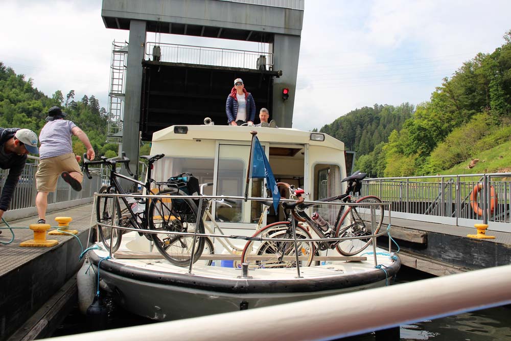 Le matin : Visite commentée du Plan Incliné, ascenseur à bateau de type transversal, unique en son genre en Europe, qui remplace 17 écluses et offre une sensation unique. Puis balade en vedette sur le canal aval jusqu’à l’entrée de l’ancien canal supprimé par la construction de l’ouvrage et retour au point de départ en franchissant à nouveau le dénivelé de 44,55 mètres. Déjeuner au restaurant. L’après-midi, nous avons pris place dans un authentique train à vapeur, une magnifique locomotive de 1906, pour une balade dans la forêt d’Abreschviller, jusqu’aux paysages pittoresques de la vallée de la Sarre Rouge. En cours de route, visite d’une ancienne scierie à Haut-Fer.