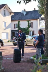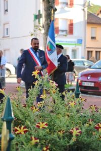 Après le dépôt de gerbe au Monument aux Morts, M le Maire Thomas VINCENT prononça un discours :