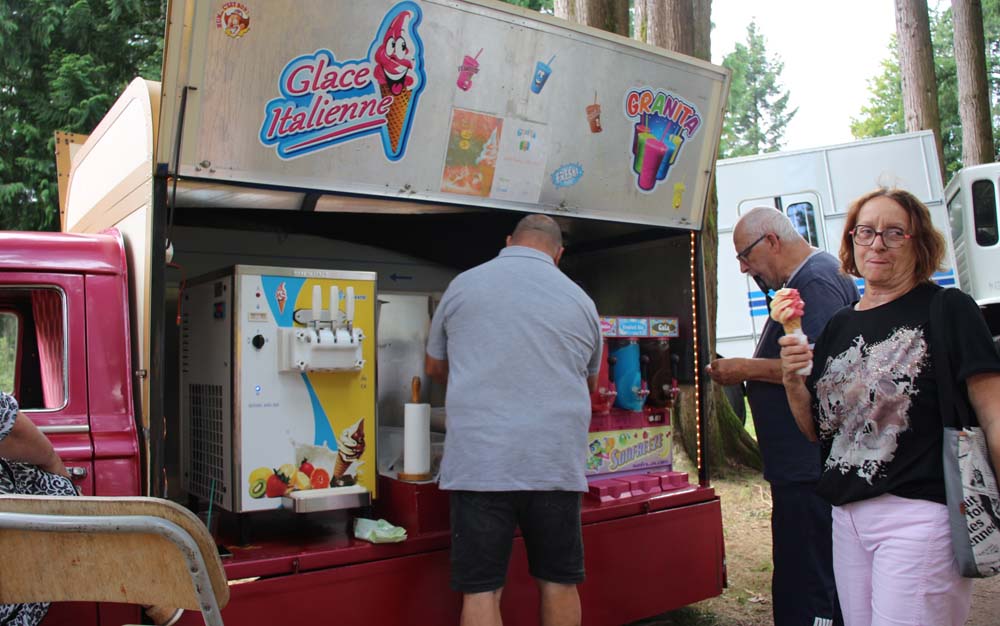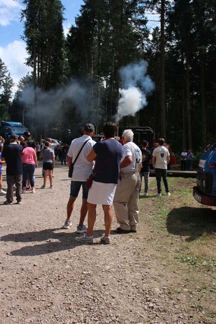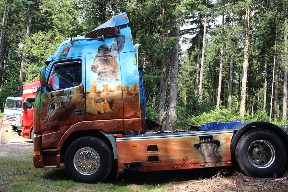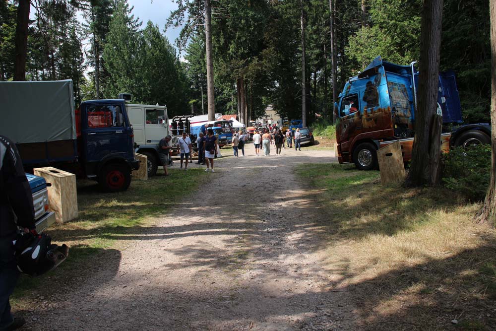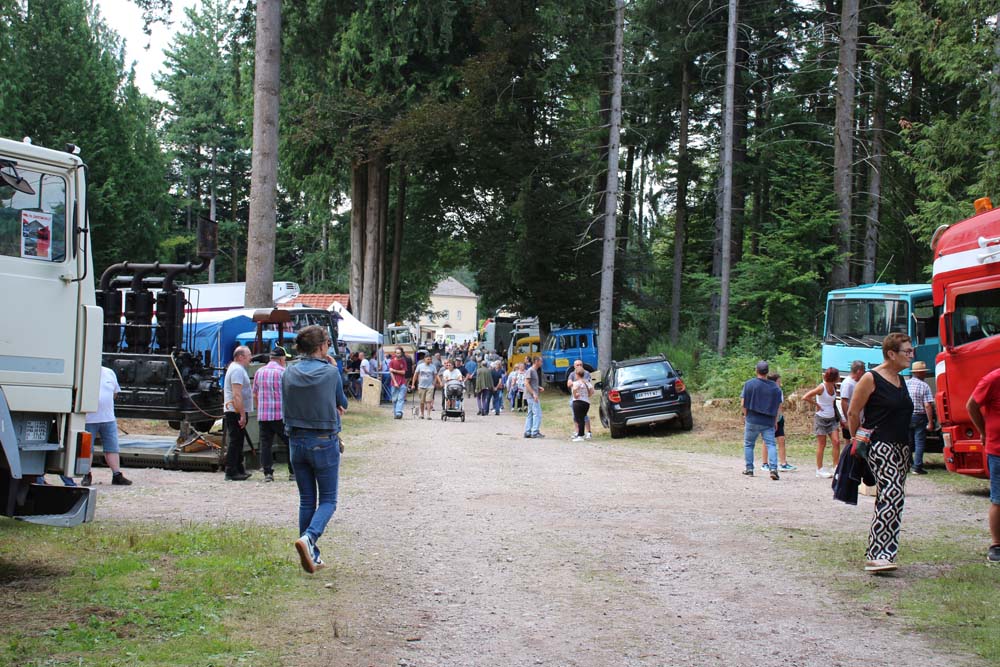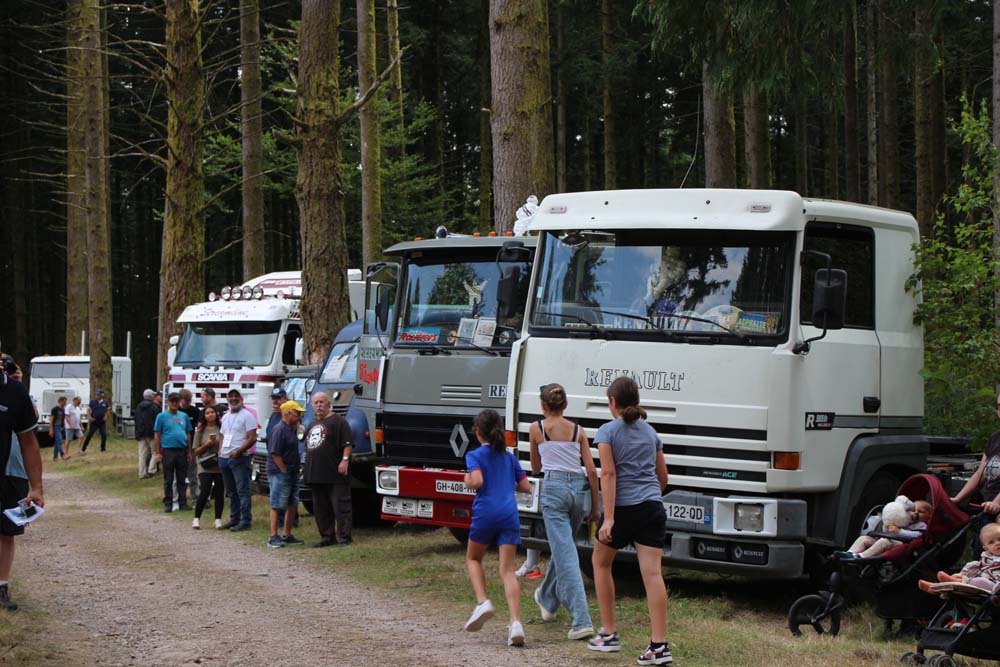 Le dimanche les camions sont restés à l’ombre des sapins, les visiteurs ont déambulé dans l’allée forestière toute la journée, les averses de la mi-journée ont juste laissé quelques gouttes de pluie au bout de ces longs nez pétaradants.