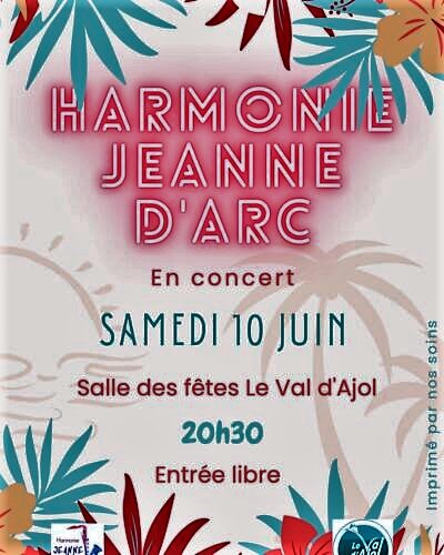 Date 06 12 25 Expired! Heure 18 h 30 min - 19 h 30 min Concert de l’Harmonie Jeanne d’Arc 18h30 à la Salle des Fêtes du Val-d’Ajol Partagez cet événement Étiquettes : une