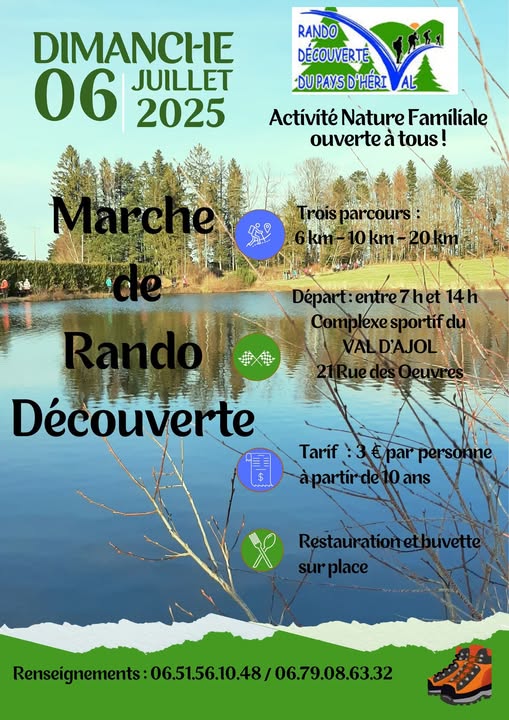 Date 06 07 25 Expired! Heure 7 h 00 min - 14 h 00 min Marche de Rando Découverte du Pays d’Hérival Partagez cet événement
