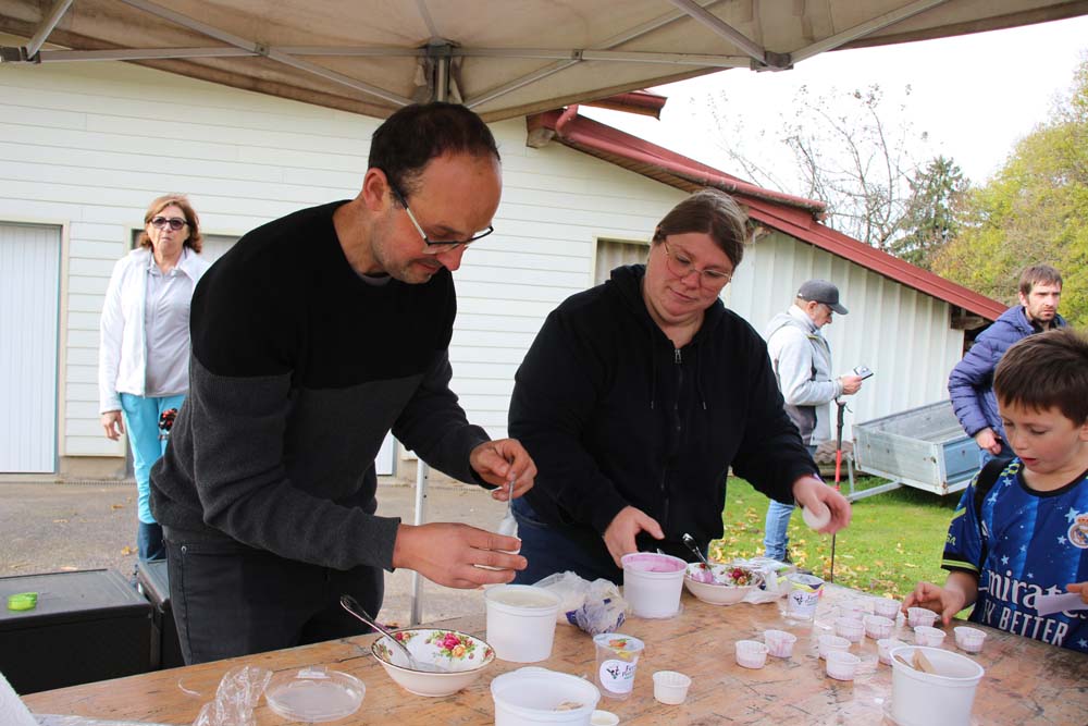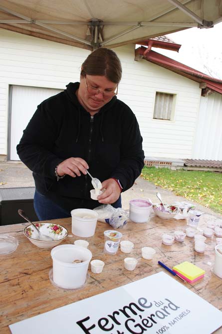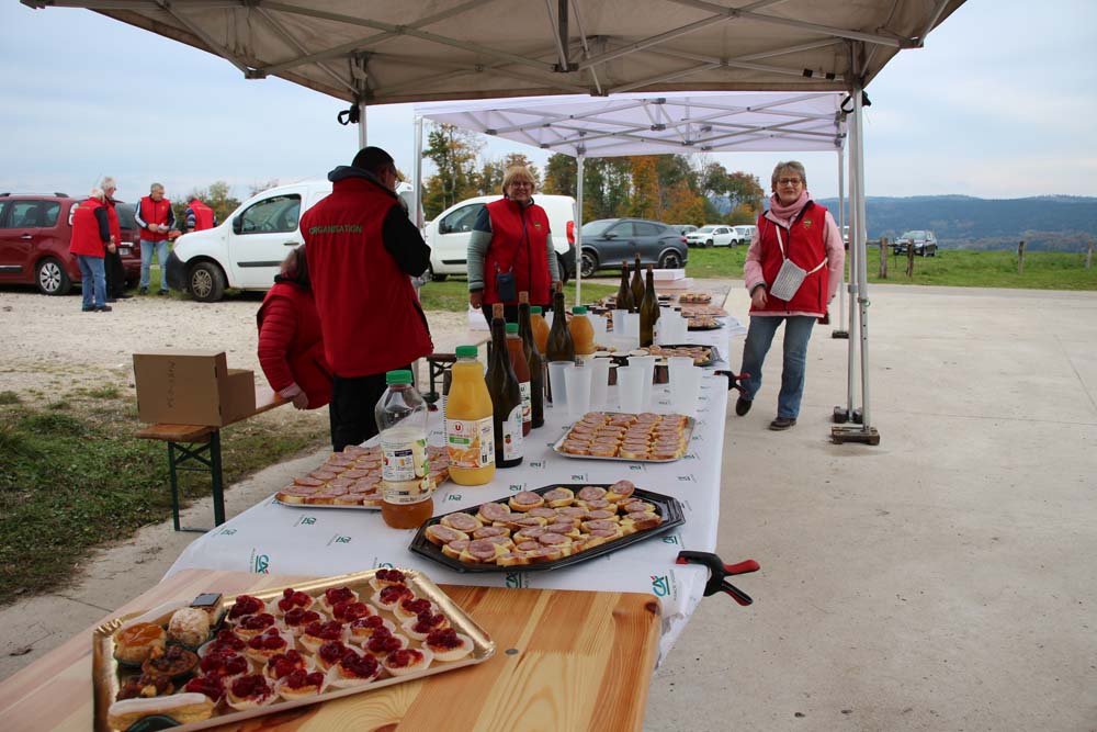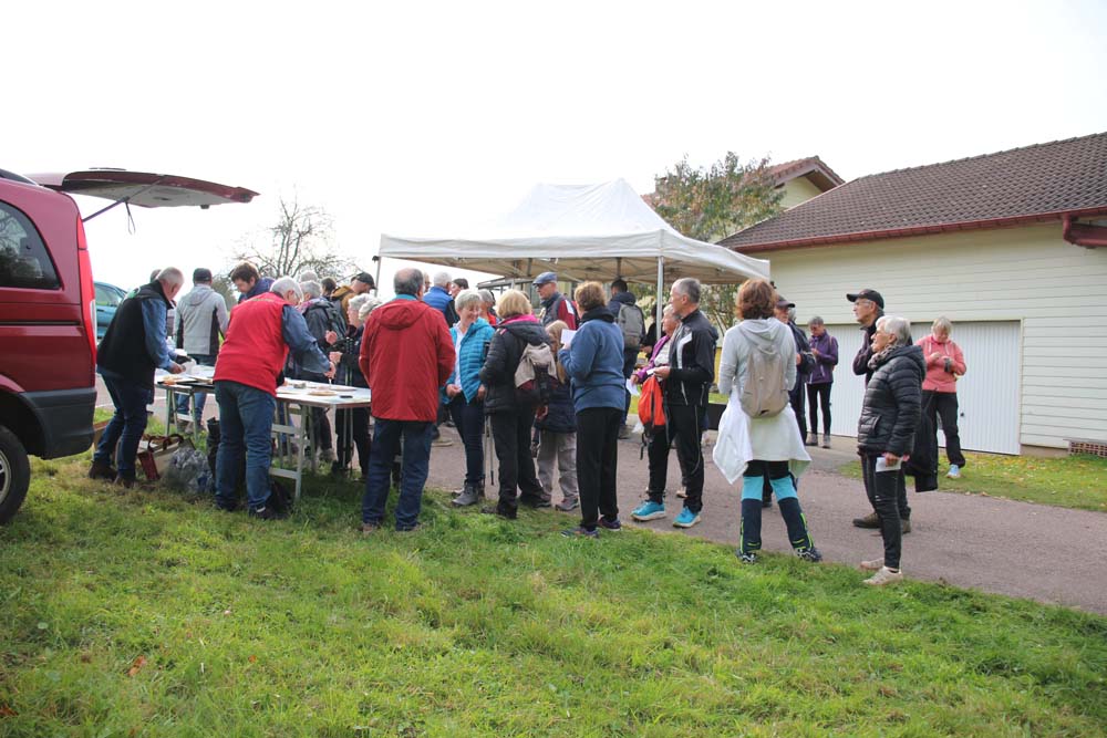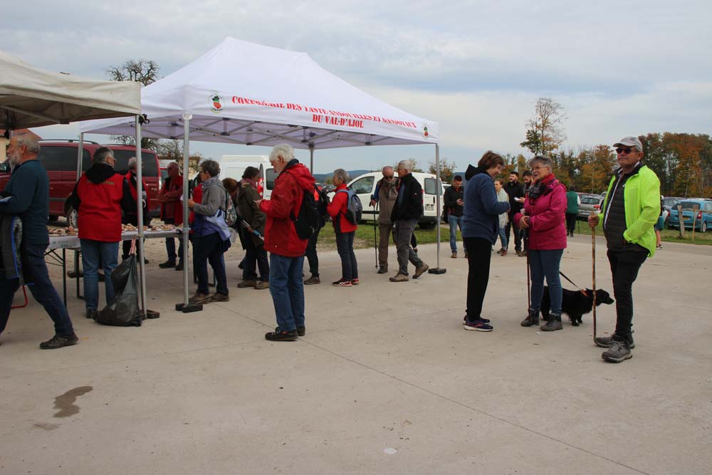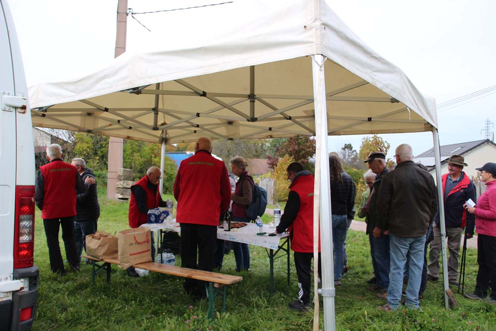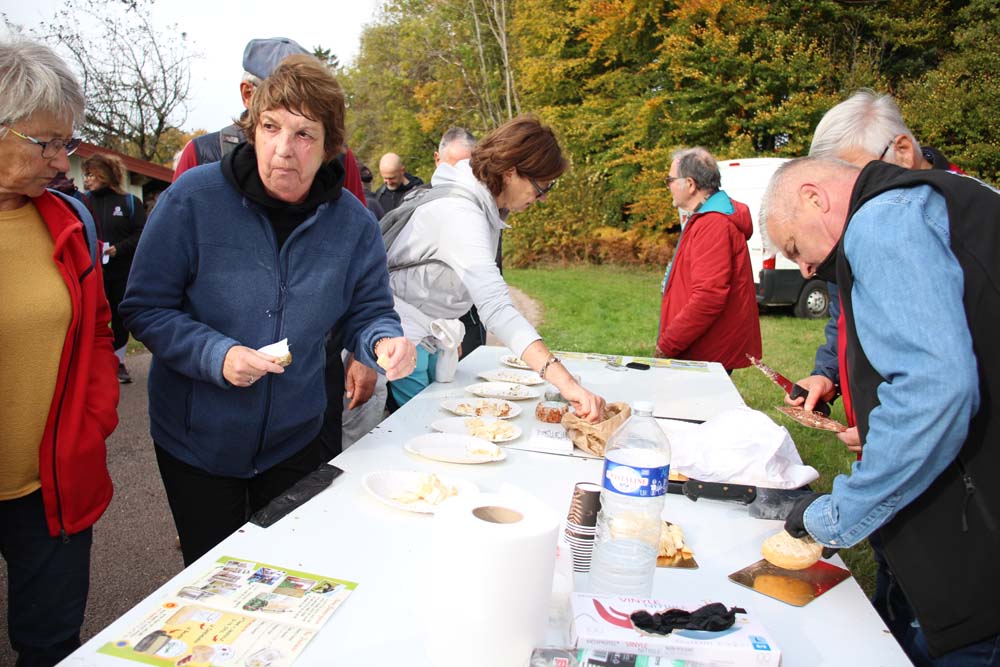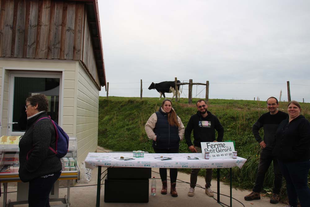 C’est à « la ferme du Haut de Salmon » chez Madeleine et Étienne que la Confrérie des Taste Andouilles organisatrice de « la semaine du Goût » a installé son chapiteau pour le départ et le retour de la balade.