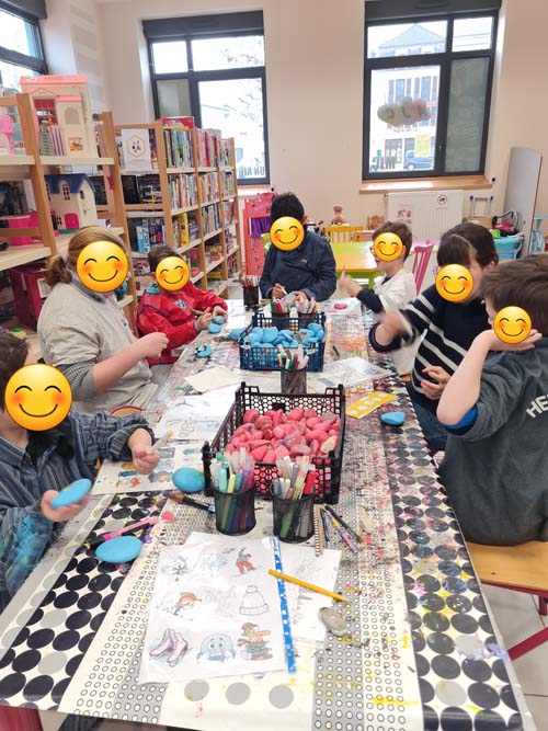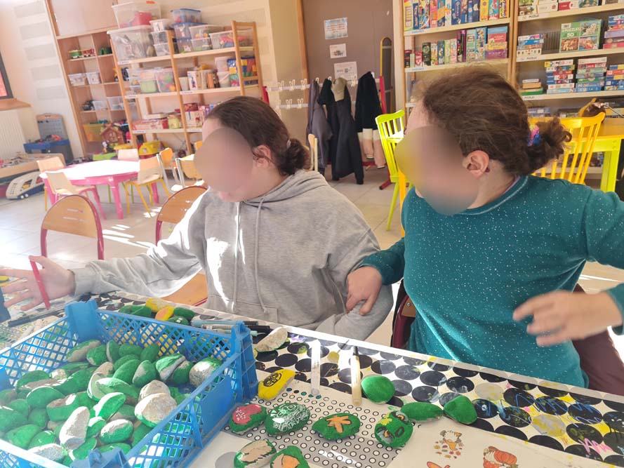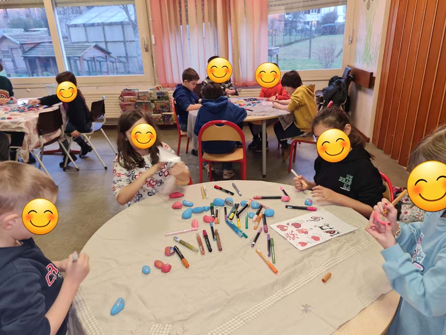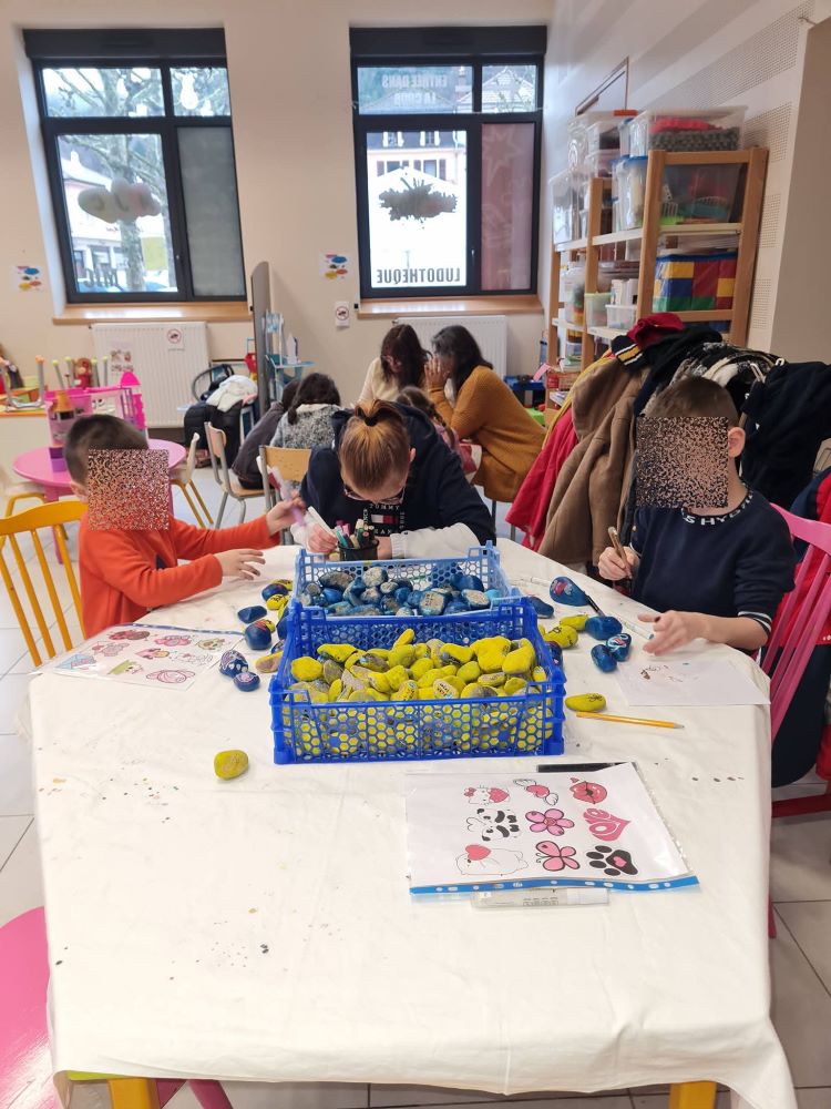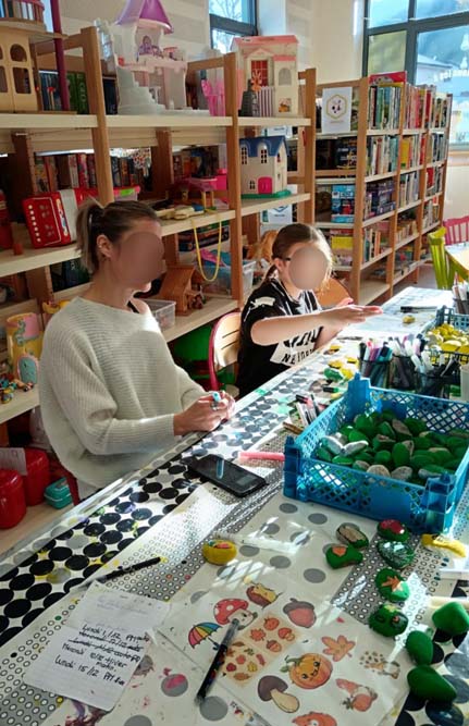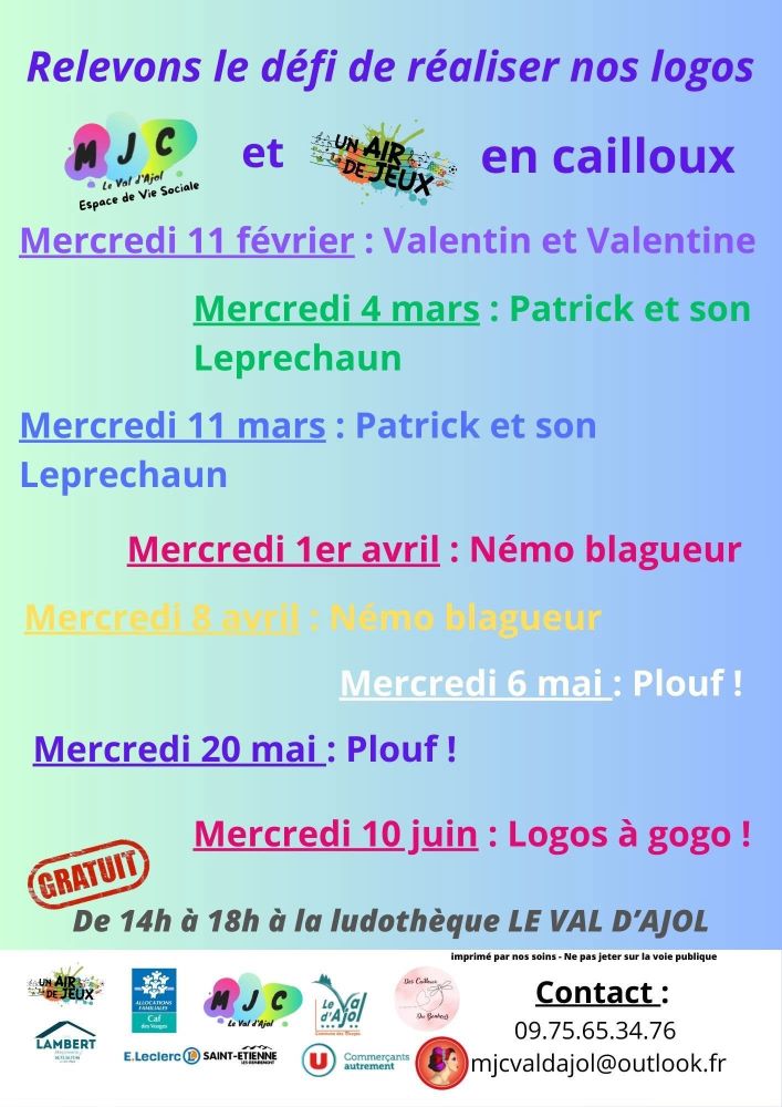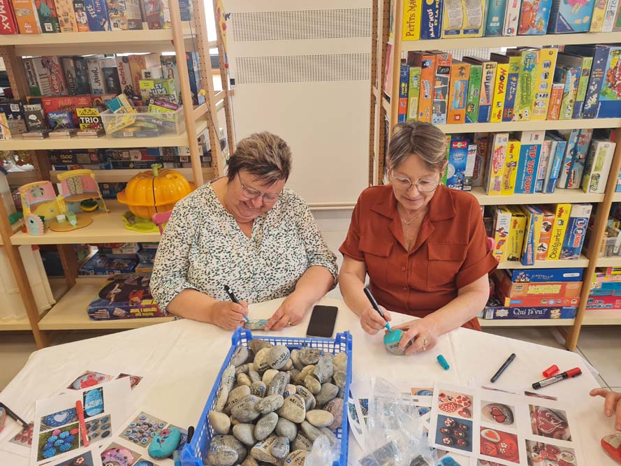 Certains mercredis de chaque mois, la MJC du Val d’Ajol, en partenariat avec l’Association Des Cailloux… Du Bonheur, propose des ateliers gratuits à la ludothèque « Un Air de Jeux ». Maryse, pour la MJC, et Patricia, pour l’association, y accompagnent petits et grands dans des activités créatives, tout en leur laissant la possibilité de profiter des jeux mis à disposition.
