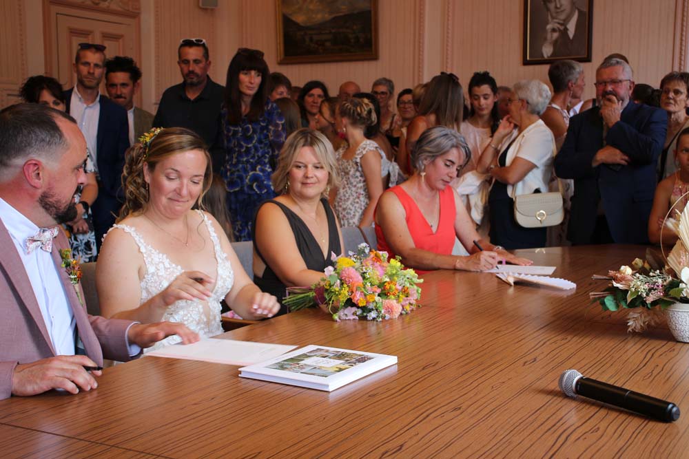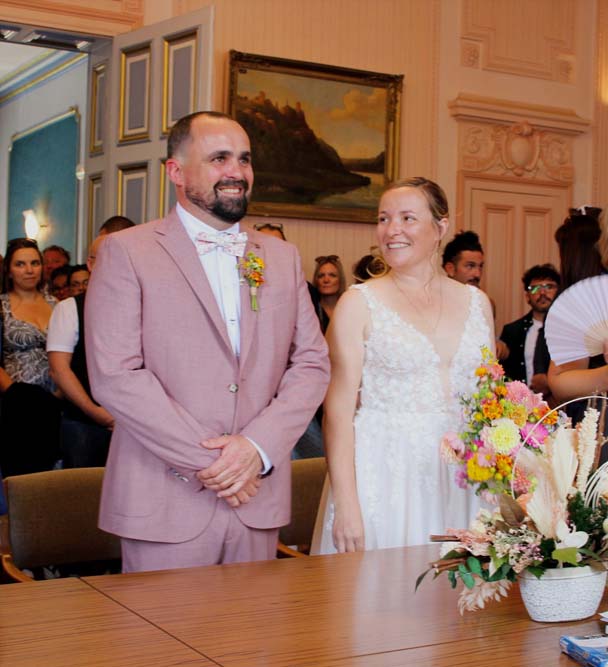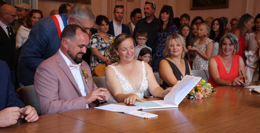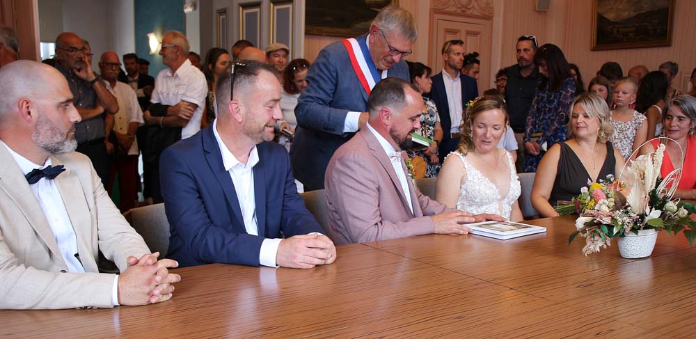 M le Maire thomas VINCENT et Mme Camille FERNANDEZ ont scellé leur union par le traditionnel « oui » devant M Philippe BIETTE adjoint au Maire qui a célébré la cérémonie en présence des familles et une multitude d’amis des époux.