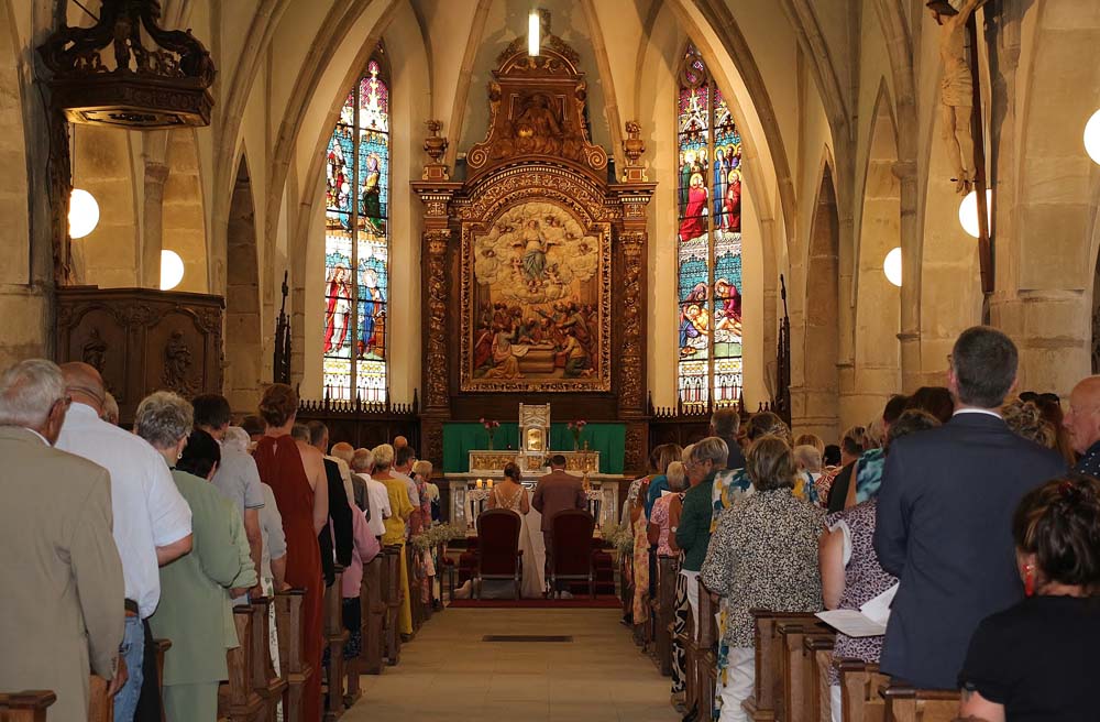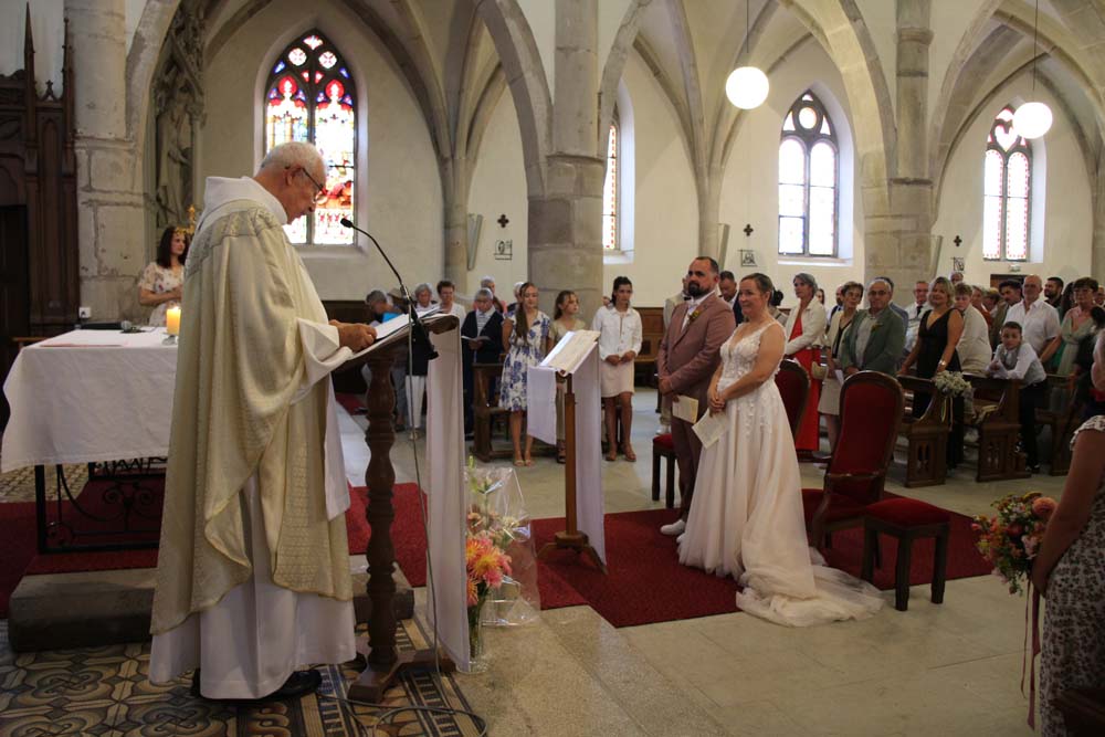L’abbé Claude DURUPT a officié la cérémonie religieuse en l’église paroissiale, pour lui c’est aussi une première, de célébrer le mariage du maire de la ville et conseiller Départemental, et peut-être aussi une première pour cet édifice religieux datant du XVI siècle.