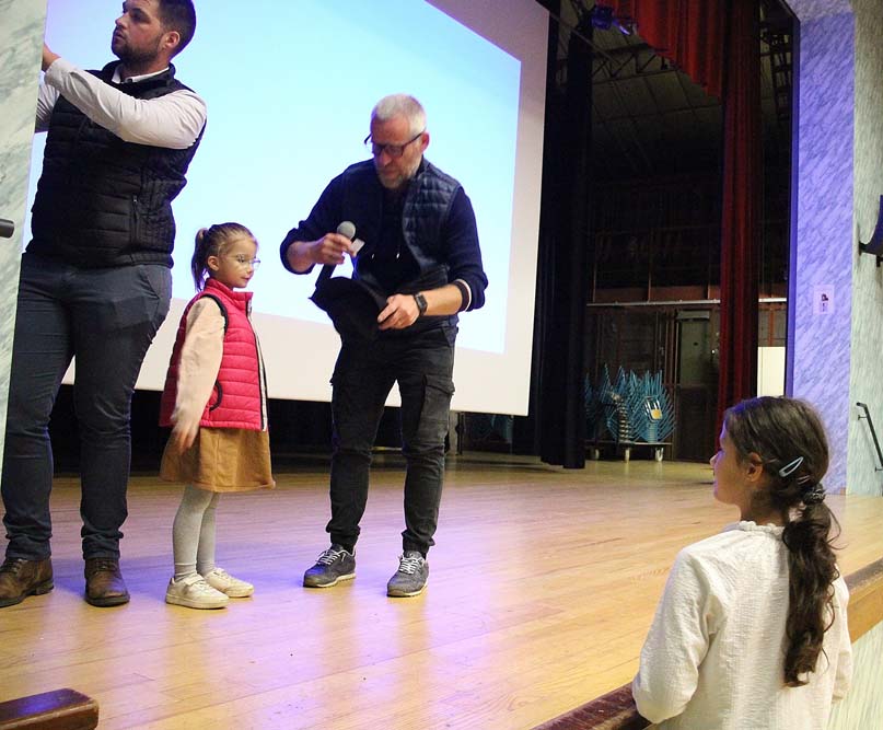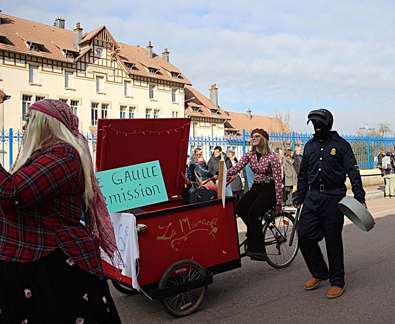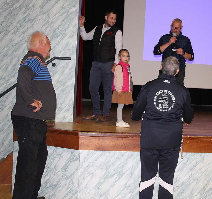 Le diaporama présenté à l’assistance monté par un ami de Michel, a plongé les spectateurs dans les coulisses de la préparation des chars, des repas pour restaurer tous les affamés, avant de se promener, sur la brocante, le marché gourmand, la dégustation de la meilleure tourte à l’andouille, avant les remises de prix, les intronisations, et le défilé en apothéose, avec des clichés de personnages dignes d’un passé révolu. Félicitations au photographe, dont j’espère vous présenter quelques spécimens avec son autorisation plus tard.