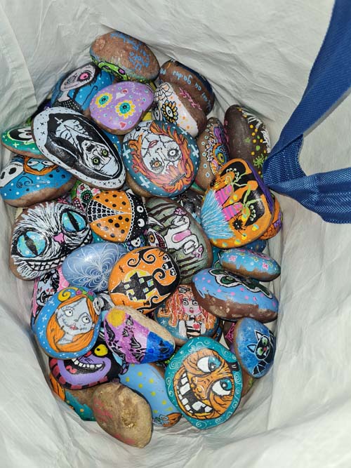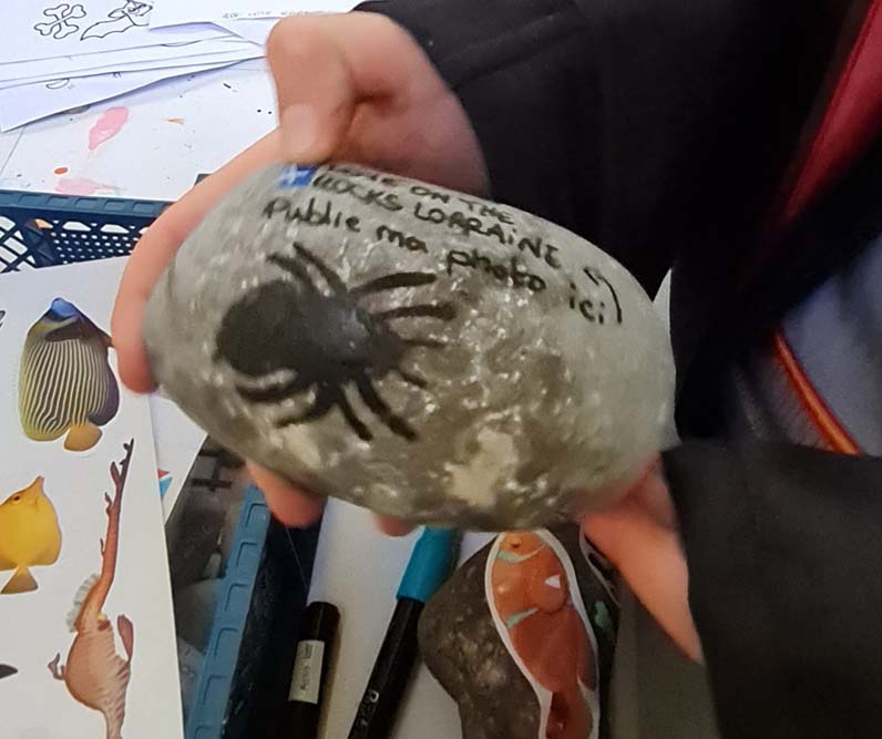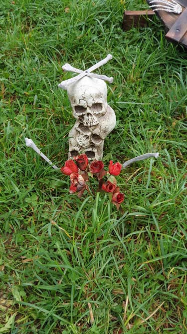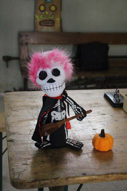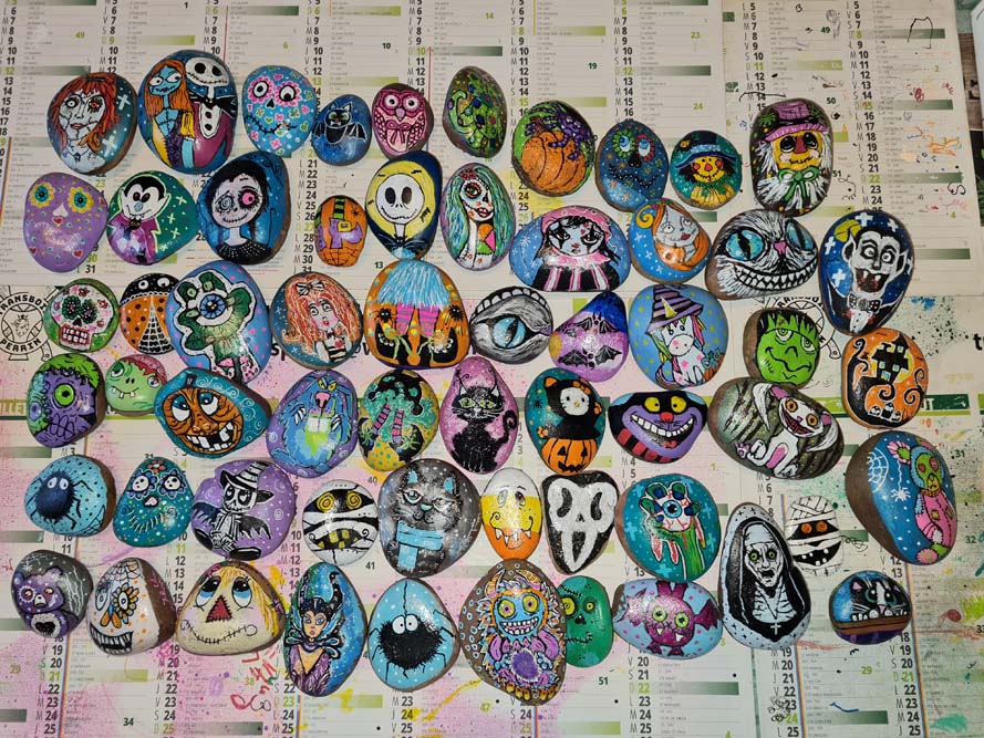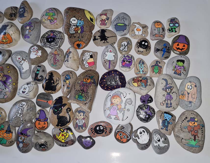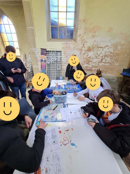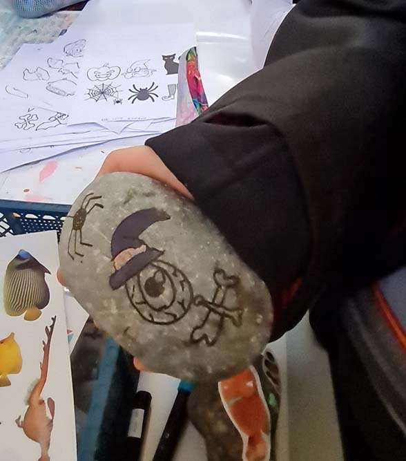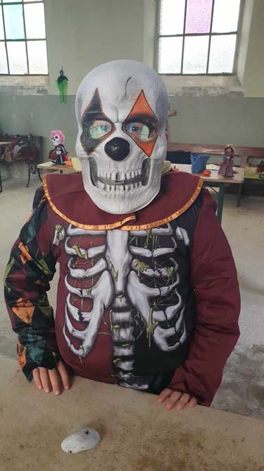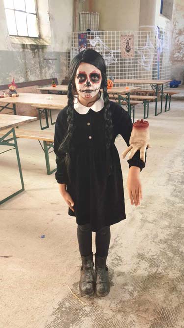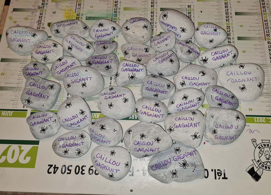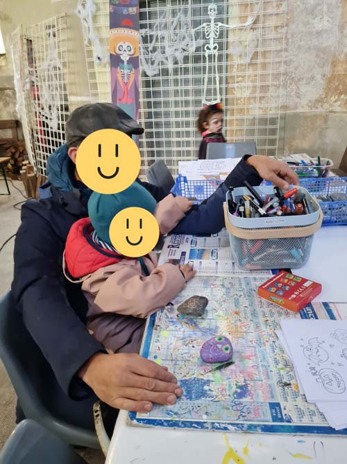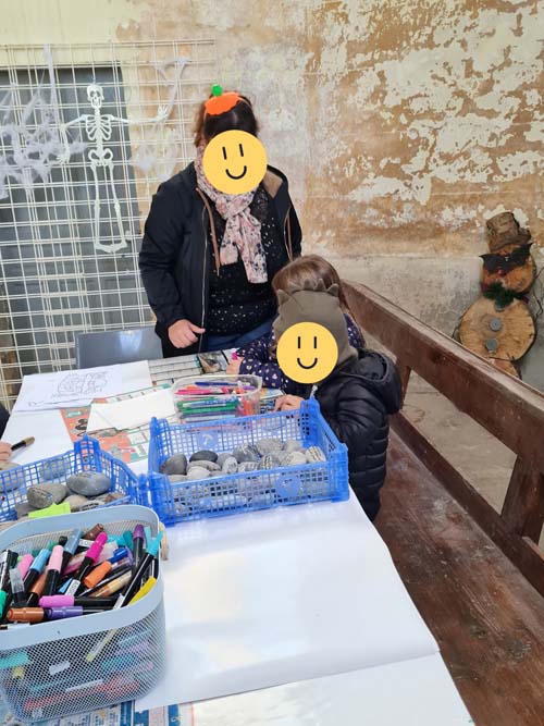 La chapelle servait d’abri, à l’intérieur Patricia initiait les petits monstres à décorer les cailloux sur le thème d’Halloween, une maquilleuse transformait les enfants sages en petits monstres grimaçants.