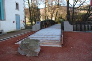 Depuis quelques semaines la passerelle principale de l’enjambement de la Combeauté est ouverte, l’autre passerelle permettant de rejoindre la rue de Plombières en longeant le