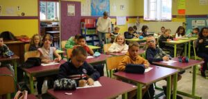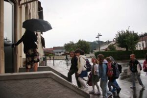 Rentrée pluvieuse mais heureuse nous l’espérons pour cette année 2025. Grosse affluence de parents et d’enfants, devant le portail de l’École du Centre située Rue