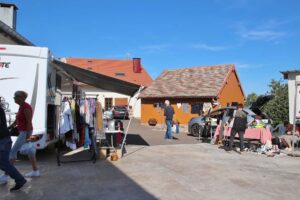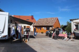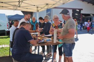 Retour à la ferme du GAEC de Rapaumont, le vide grenier attendait les chineurs d’objets divers, et pour les affamés une restauration avec boissons fraîches incitait les randonneurs à une pause bien méritée.