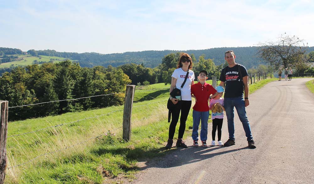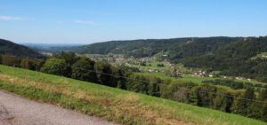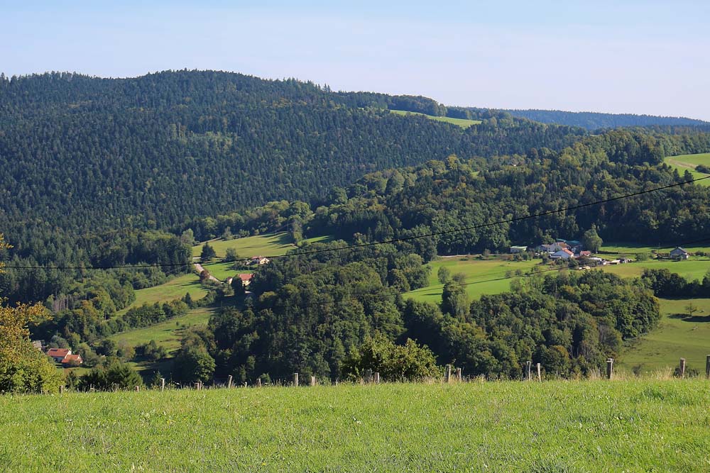 Départ du GAEC de Rapaumont, de chez Mr & Mme PETITJEAN. Direction la stèle de l’aviateur, sans oublier d’admirer les points de vue sur le Val-d’Ajol au sud et Faymont à l’opposé, pour s’engager à gauche vers les maisons de Mme JAQUOT et de Mr AIZIER et rejoindre la ferme équestre du Clos Léry en passant sous les planches du Tassiènière, ensuite direction la grande fontaine pour accéder à la ligne de crête et au premier contrôle. C’était également la séparation des deux circuits des 5 et 10 KM.