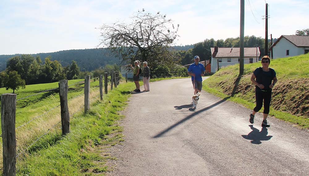 Pour les plus endurants le parcours longeait la ligne de crêtes jusqu’au carrefour de Corfaing et de la route du Rey, au passage de nombreux points de vue, Clairegoutte, plus loin le haut de l’Â et le Dropt (Girmont Val-d’Ajol). Il fallait ensuite emprunter la route du Rey jusqu’au captage de la source DIRANT pour pointer au deuxième contrôle et s’engager sur le sentier balisé pour arriver au captage de la source du Rey, puis le haut du Repoix, passer à proximité du GAEC des Gréhées (Mr JACQUOT) pour rejoindre l’arrivée et boucler ces 10 kilomètres pour un dénivelé de 264 mètres.