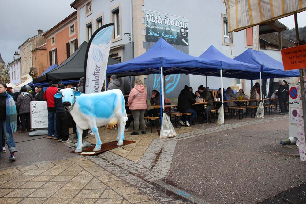 Un clin d’œil aux foires d’antan : une vache bleue observait les passants sans meugler.