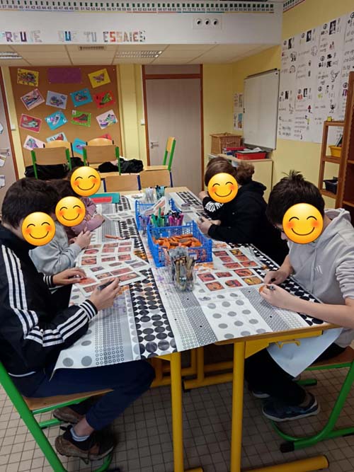 Le troisième atelier s’est déroulé le lendemain, avec la classe de CE2-CM1 de l’école publique du Val d’Ajol. Là encore, les enfants ont fait preuve de beaucoup de créativité et d’enthousiasme pour relever le défi des logos, dans une ambiance toujours aussi chaleureuse et participative.