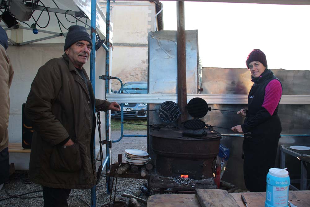 La météo était clémente, et un petit vent, incitait les badauds à manger une gaufre, cuite sur un fourneau à quatre pots, accompagné d’une boisson chaude, ainsi que des marrons chauds.