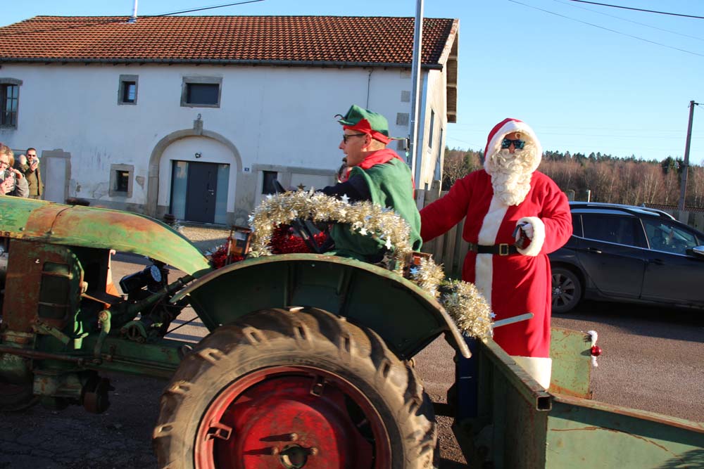 Le lutin avait emprunté un tracteur pour aller chercher le Père Noël qui s’était perdu dans notre vaste campagne.