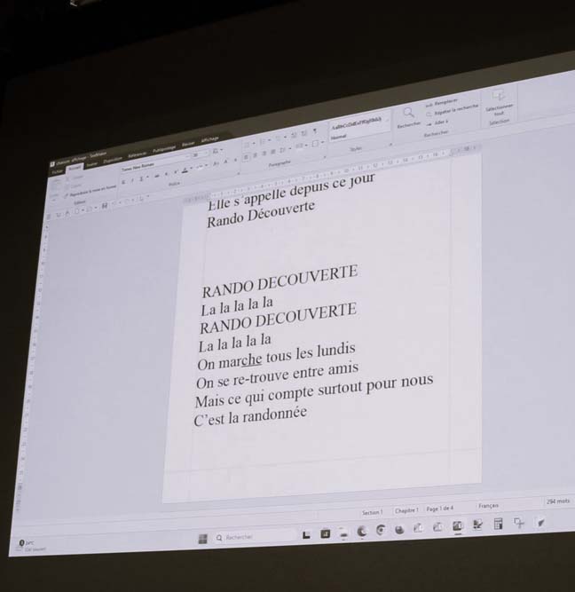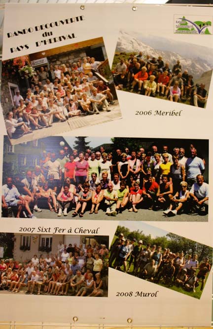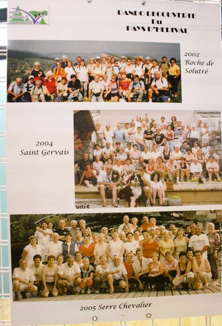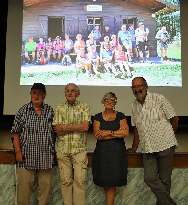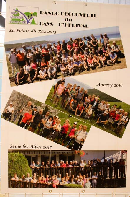 Les dirigeants actuels sous la houlette du nouveau président, Jean Pierre Remy, avaient exposé de grands panneaux résumant les temps forts de l’association au fil des ans. Enfin sur grand écran furent projetées et agréablement commentées sans la moindre failles vidéos, photos et diapos d’un passé bien fourni sur 30 ans de randonnées conviviales. Une minute de silence fut observée en la mémoire des disparus comme Michel André, un des premiers randonneurs de 1991 qui avait fait de la vidéo et de l’informatique sa seconde passion puis des présidents disparus Noël Véber et Roger Marcaud.