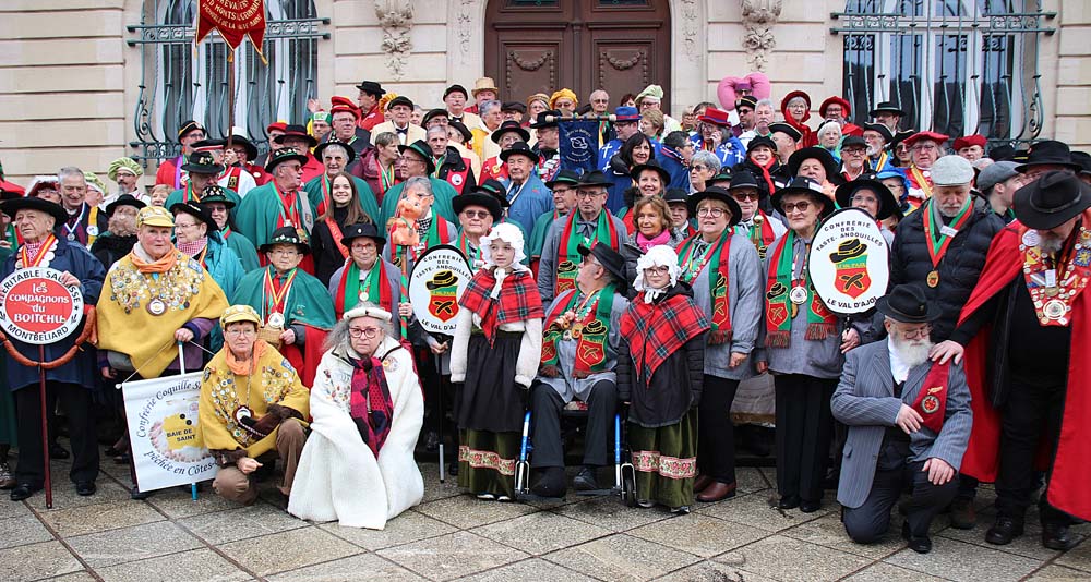 Cette année la confrérie a souhaité mettre à l’honneur une autre Andouille que celle du Val-d’Ajol, « l’Andouille de GUÉMÉNÉ » avec la participation de la Confrérie des Goustiers de l’Andouille de Guéméné au chapitre puis au défilé, ainsi que la présence du produit sur le marché gourmand.