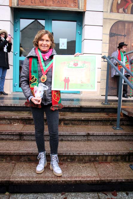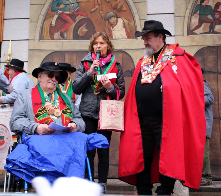 Invitée d’honneur, Mme Brigitte ROMARY secrétaire générale bénévole à la ligue contre le cancer du comité des Vosges, organisatrice des marches rose pour le département, et Brigittte est originaire du Val-d’Ajol. La confrérie, lui a remis un chèque de 373€ pour la Ligue contre le cancer.