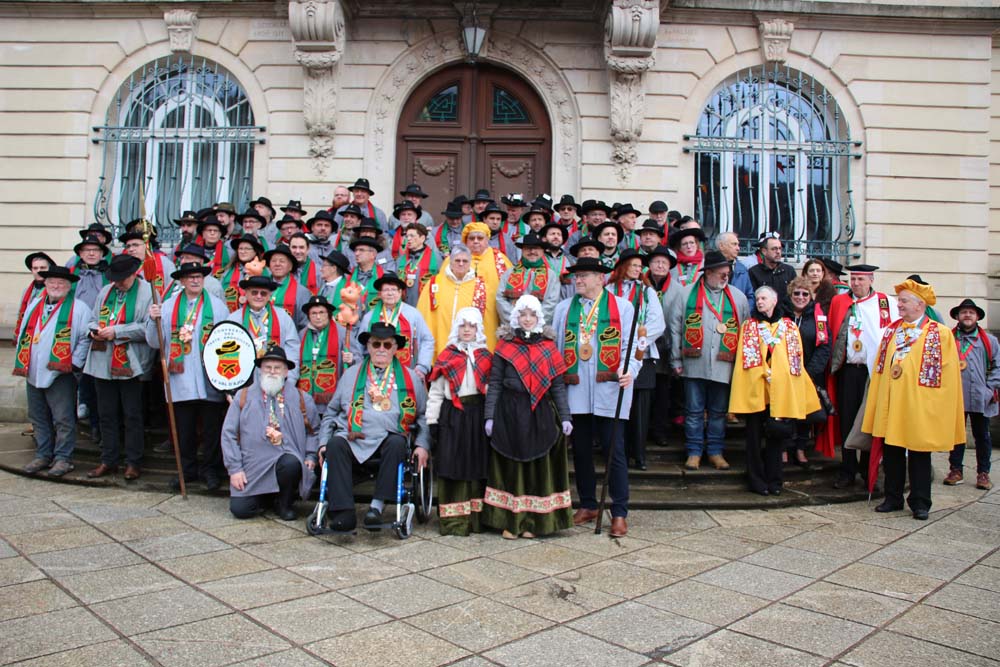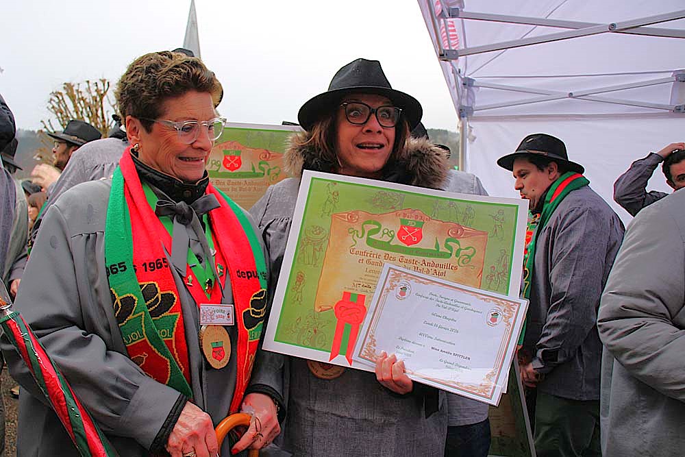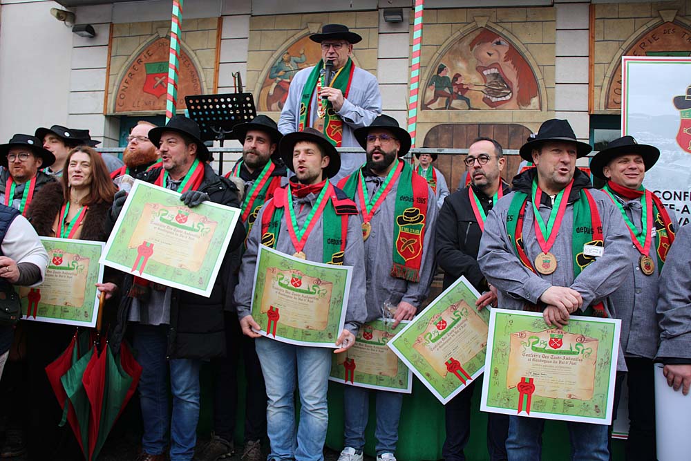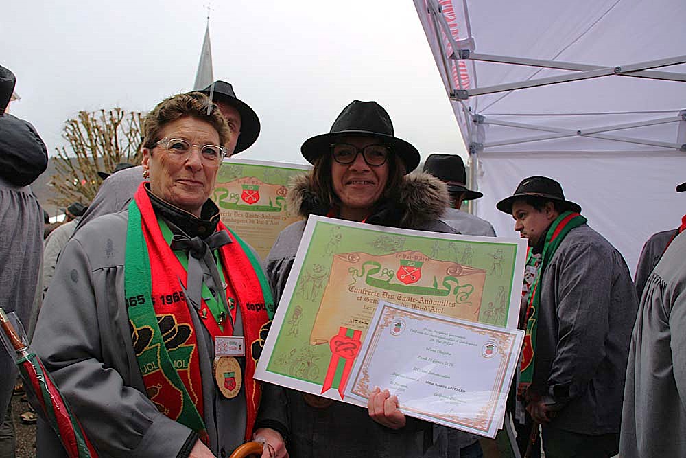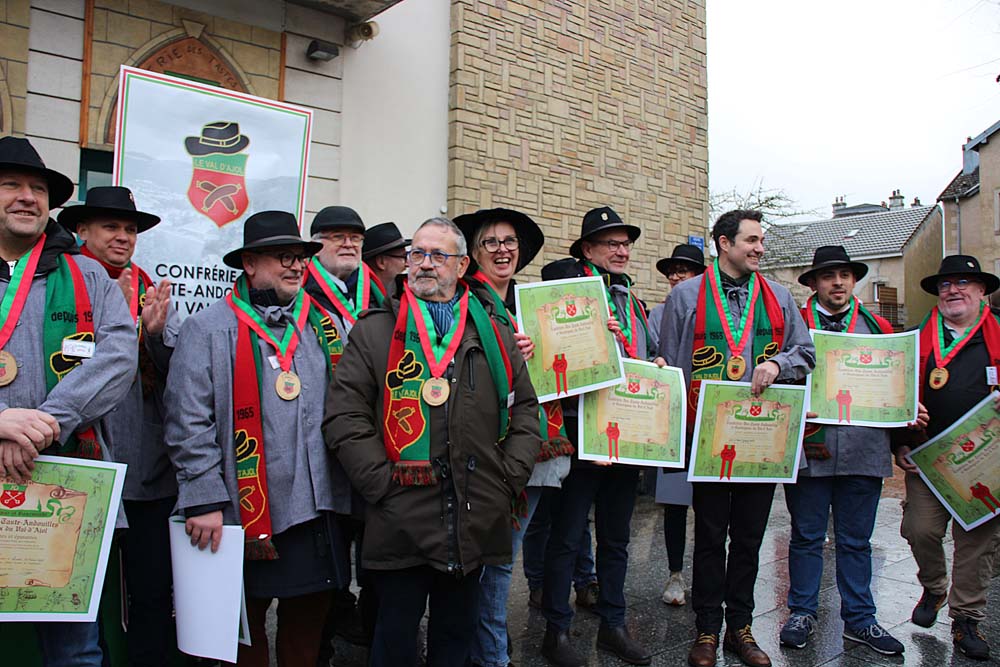 Cette année marque le 60e chapitre de la prestigieuse Insigne et Gourmande Confrérie des Taste-andouilles et Gandoyaux du Val-d’Ajol. Près de cinquante nouveaux membres ont été intronisés selon la plus pure des traditions, arborant la blaude, le chapeau noir et l’écharpe rouge et verte, ornée de deux andouilles.