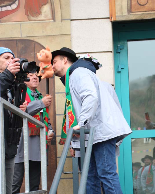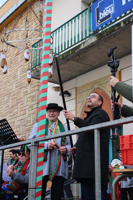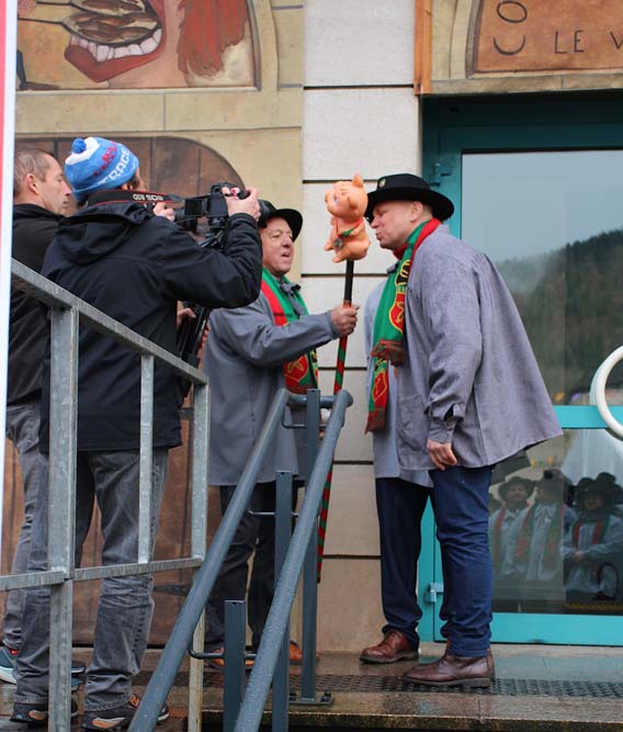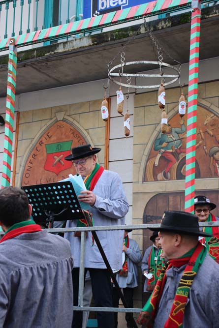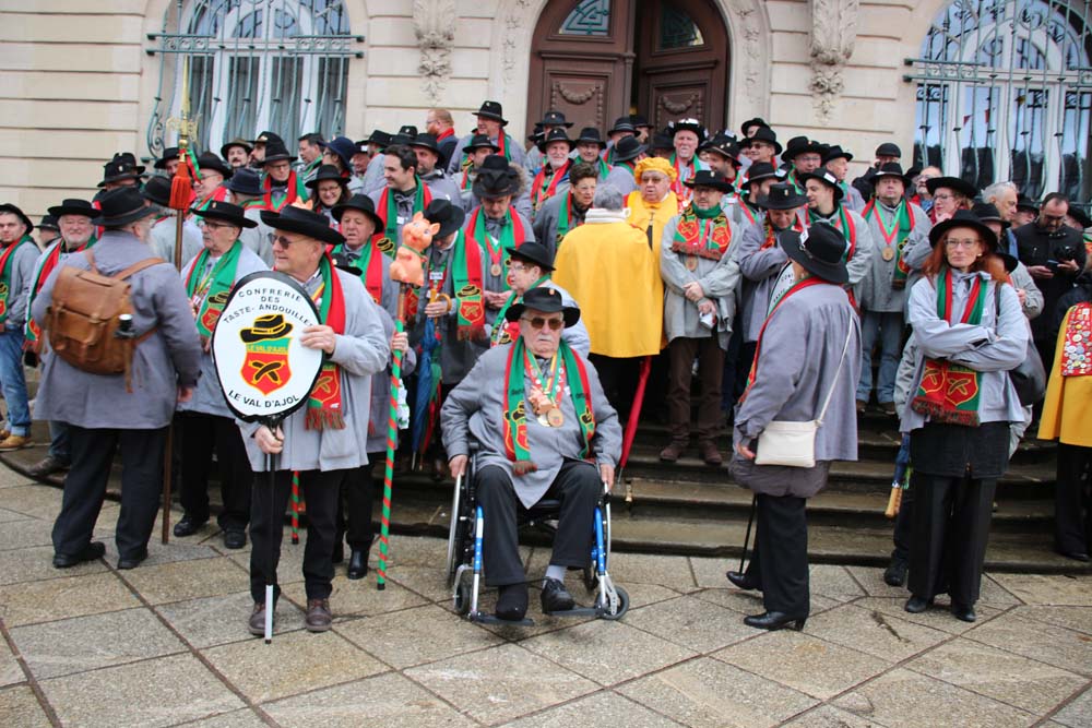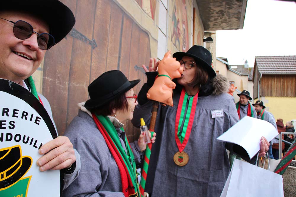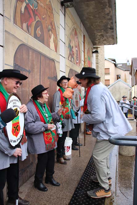 Les nouveaux ambassadeurs de l’Andouille du Val-d’Ajol ont prêter serment : « Jurez-vous de vanter les mérites et délices, par monts et par vaux, de notre célèbre Andouille du Val-d’Ajol ? . Nous le jurons ! » Cette déclaration sera faite avec enthousiasme devant une foule venue les encourager, après avoir embrassé le petit cochon rose, décrocher l’Andouille et reçu le médaillon orné du blason de la confrérie.