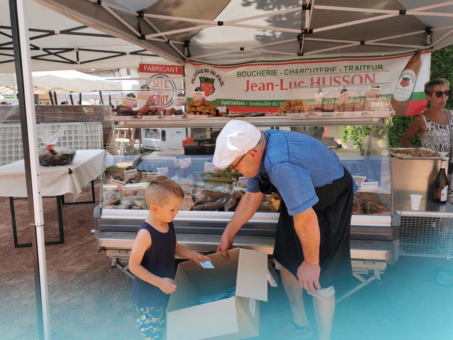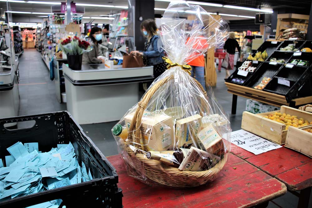 Chaque dimanche vers midi, un panier préparé par un commerçant participant, d’une valeur de 200€ minimum est tiré au sort.