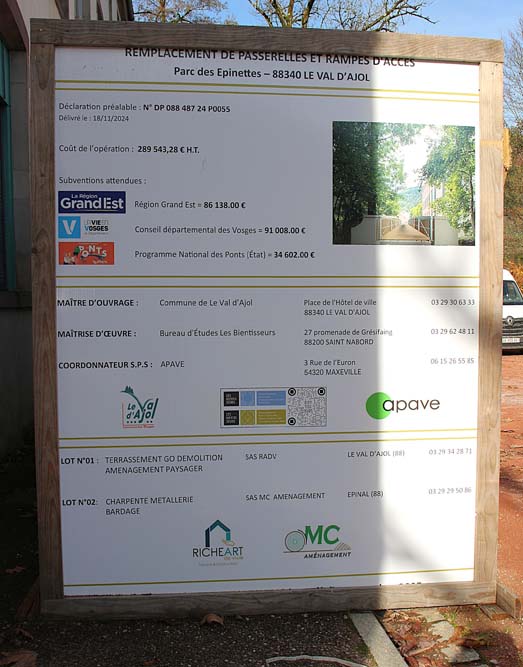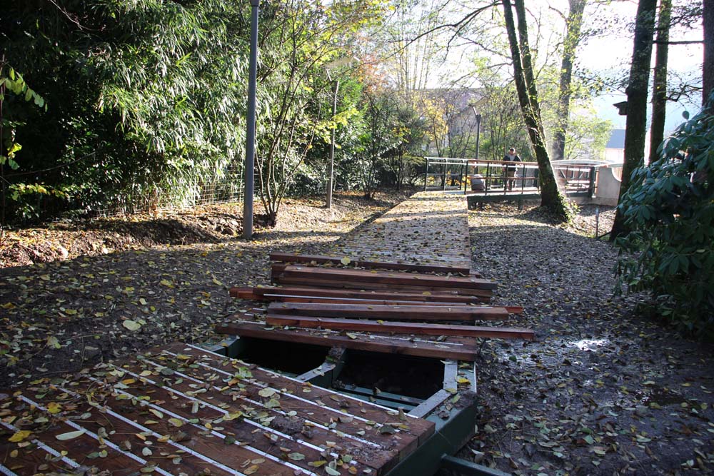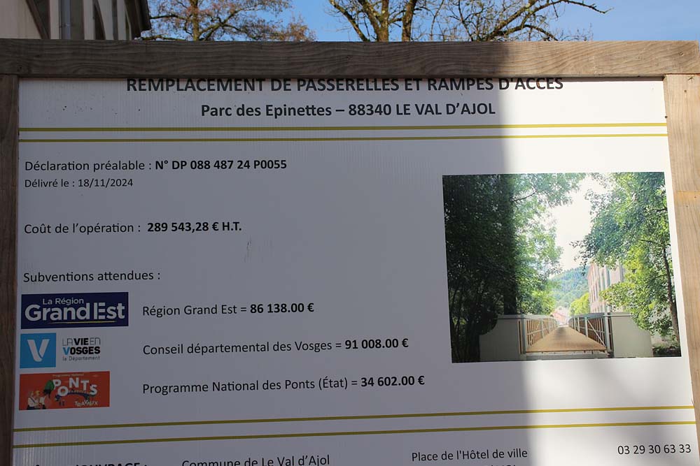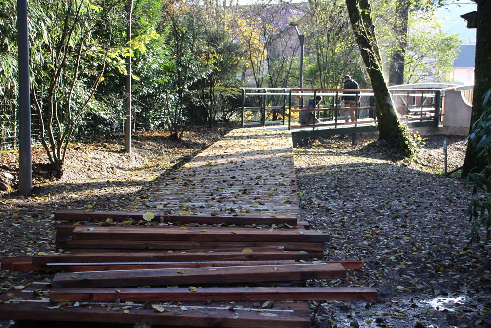 D’importants travaux ont eu lieu au parc des Épinettes. Les anciennes passerelles ont été fabriquées tout en bois pour répondre au cahier des charges et être subventionné au taux maximal, mais l’humidité a créé des dégâts irréversibles, il était nécessaire de les changer pour la sécurité des usagers.