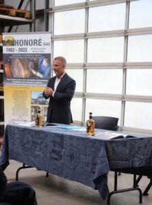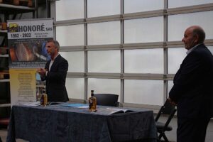 En matinée, les officiels, les retraités et les salariés actuels ont été reçus par Messieurs Honoré père et fils ayant repris l’entreprise en 1998, pour l’intégrer au groupe « Honoré SA » basé aux Forges près d’Épinal.