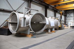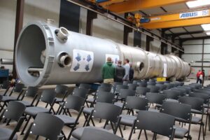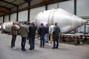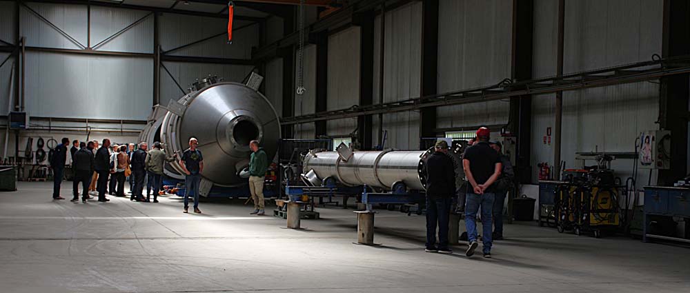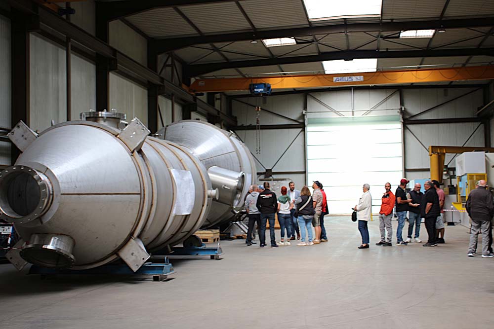 L’après-midi les visiteurs ont découvert les pièces en cours de réalisation. Des cuves d’une hauteur, et longueur pouvant atteindre les 42m. destinées à la distillation de spiritueux et autres produits.