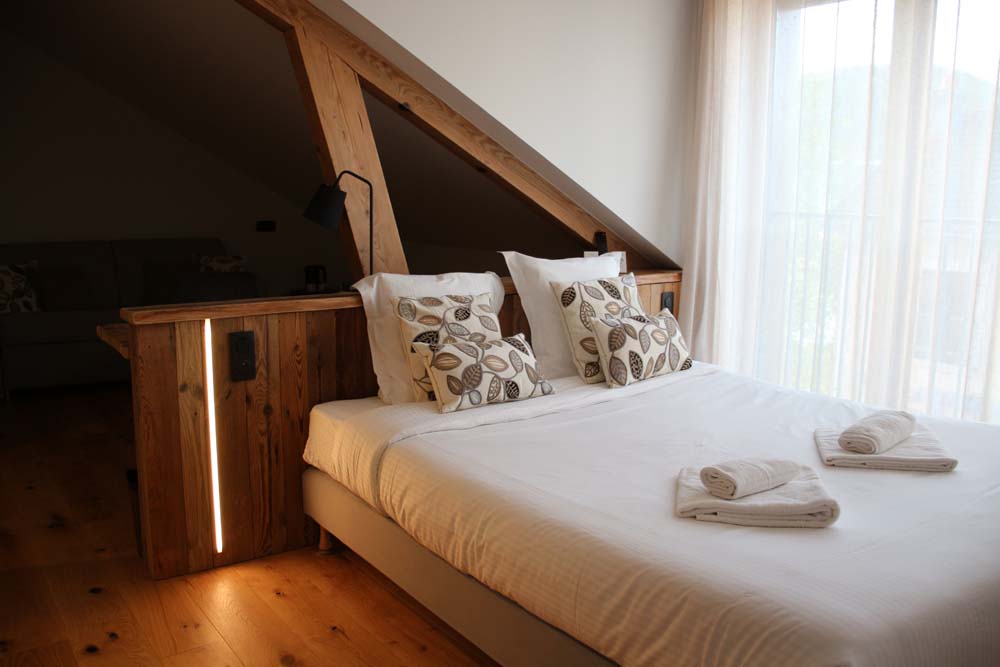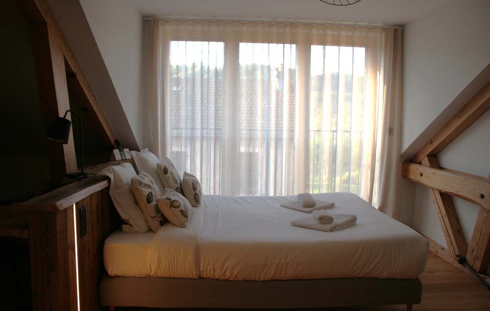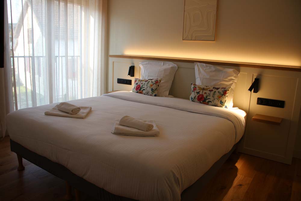 Les travaux répondent à des besoins essentiels : mettre l’établissement en conformité avec les normes des Établissements Recevant du Public (ERP), notamment en matière d’accessibilité pour les personnes à mobilité réduite, et renforcer la sécurité incendie. À l’origine, le bâtiment comptait 15 chambres d’environ 15 m² et des combles inexploités. Aujourd’hui, il propose 12 chambres spacieuses, allant de 25 à 55 m², dont 8 suites avec un espace salon et 6 chambres avec balcon donnant sur le parc de 3 hectares. Conçues pour le confort et la flexibilité, les chambres peuvent accueillir jusqu’à 4 personnes, sont toutes climatisées et accessibles grâce à un ascenseur.