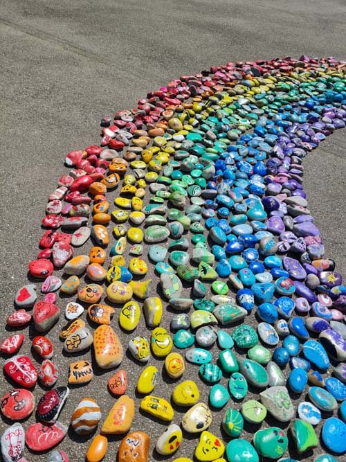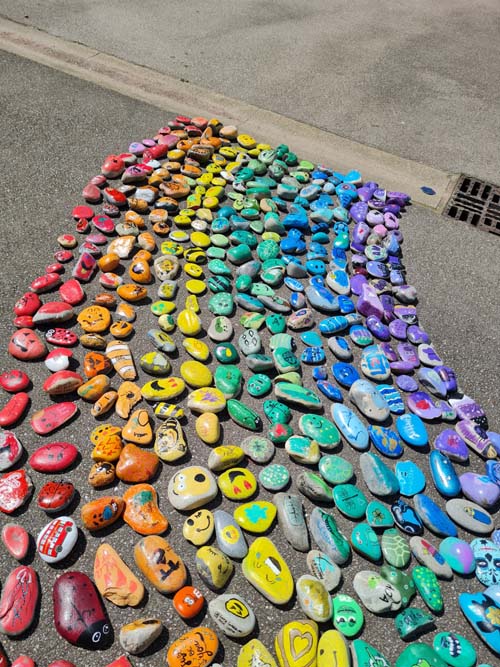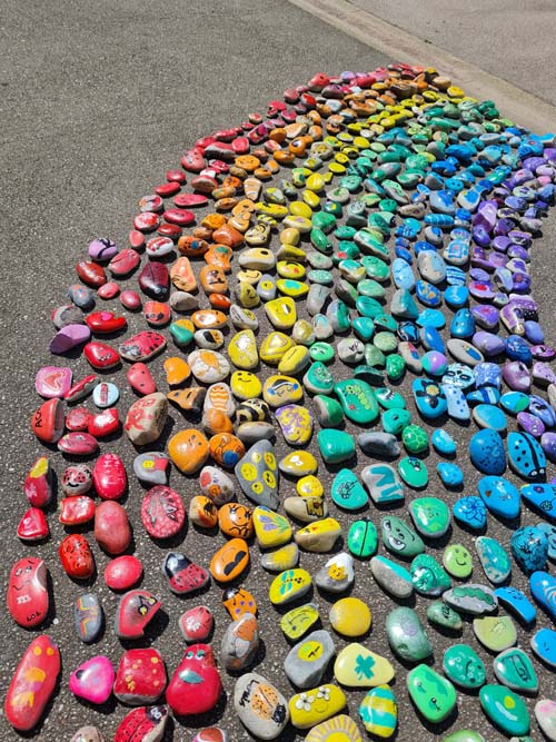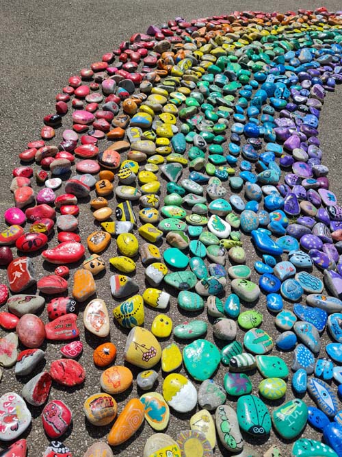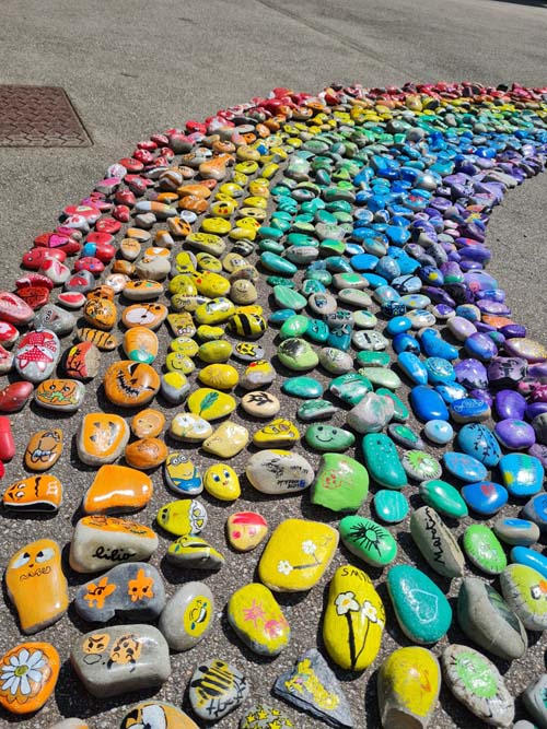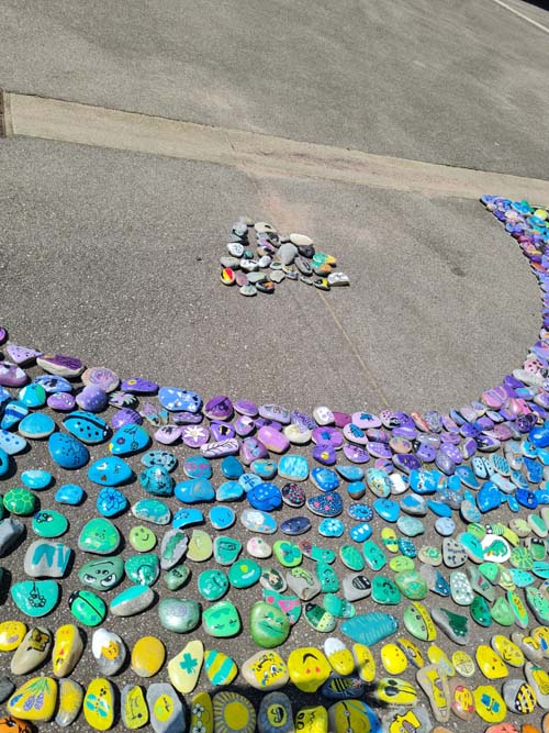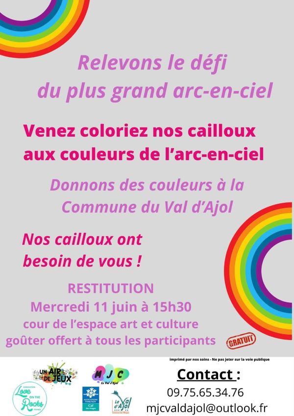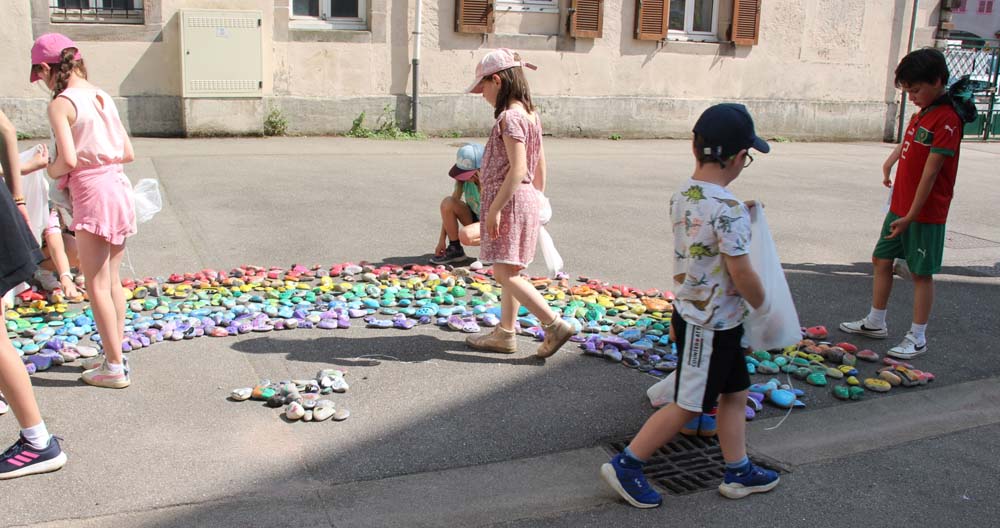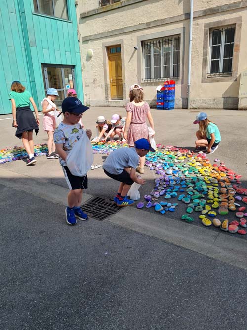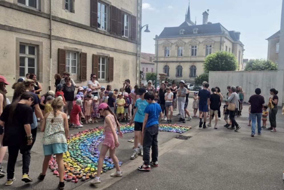 Portée par la MJC du Val d’Ajol, la ludothèque Un Air de Jeux et l’association Love on the Rocks, cette initiative a su mobiliser largement : écoles, périscolaire, accueil de loisirs, club ados et habitants se sont tous prêtés au jeu avec enthousiasme. Au total, ce sont 1368 cailloux qui ont été décorés, puis rassemblés pour former un chef-d’œuvre collectif haut en couleurs.