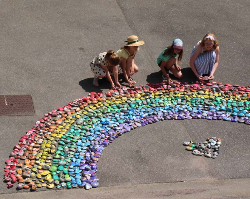 De nombreuses personnes sont venues admirer l’arc-en-ciel finalisé, preuve du lien social et de la créativité qu’il a su faire éclore.