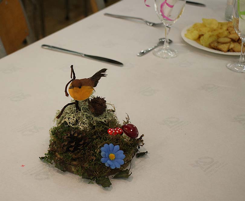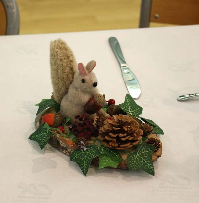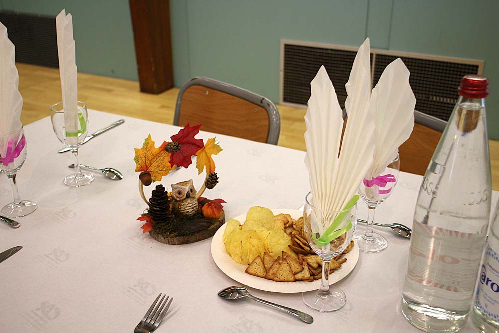 Le jour du repas des anciens à la salle des fêtes, les adhérentes confectionnent les décorations déposées sur les tables.