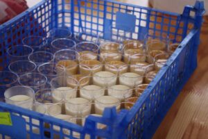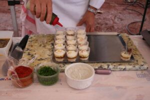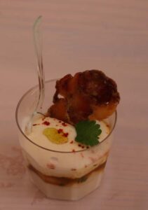Sophie L’ETANG, professeur de cuisine au Lycée Camille Claudel réalisait une panna cotta au munster et caramel de bière du Val d Ajol.