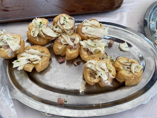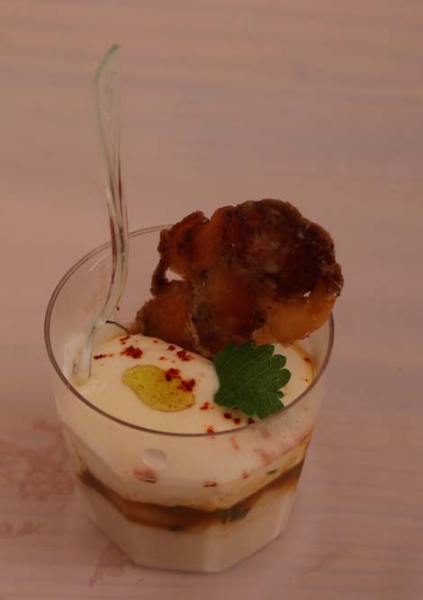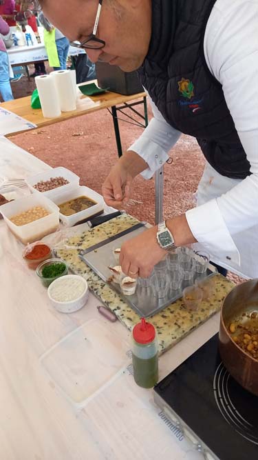 Laurent GRANDGIRARD de La Vigotte qui concoctait un petit chou (pâte à chou) farci, céleri, andouille et carpaccio de cèpes.