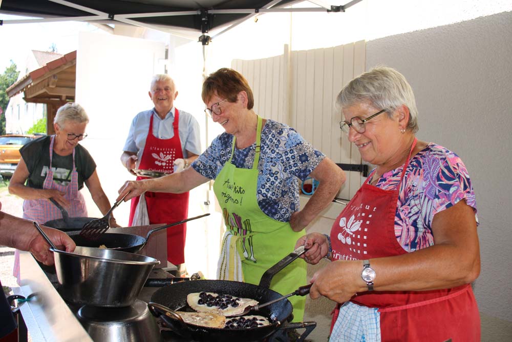l’équipe de cuisiniers des beignets, ont régalé les amateurs de beignets de cerises (de chez nous), le stock cette année étant suffisant, pour satisfaire les gourmets jusqu’en fin de journée.